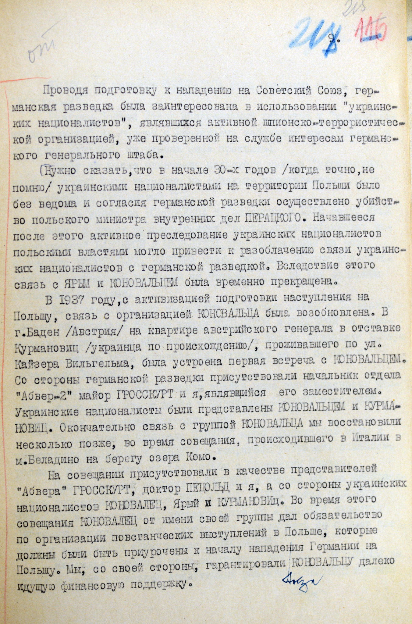 Архивные документы из протокола допроса начальника отдела «Абвер-2» германской военной разведки и контрразведки полковника Эрвина Штольце о деятельности Украинских националистических организаций (УНДО) во время Второй мировой войны на территории Украины и приграничных территориях с Польшей.