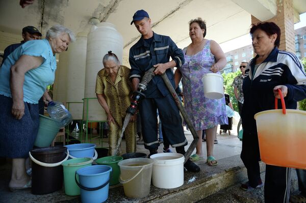 О.Царёв: — Донецк использовал резервное водохранилище, оно достаточно большое, поэтому посчитать, сколько точно дней осталось до окончания подачи воды, сложно. Если бы в регионе не начались дожди, вода бы закончилась давно. Вода поставляется не только в Донецк, но и в маленькие города, даже в Мариуполь, который сейчас занят украинскими войсками. Безусловно, эту проблему надо решать.