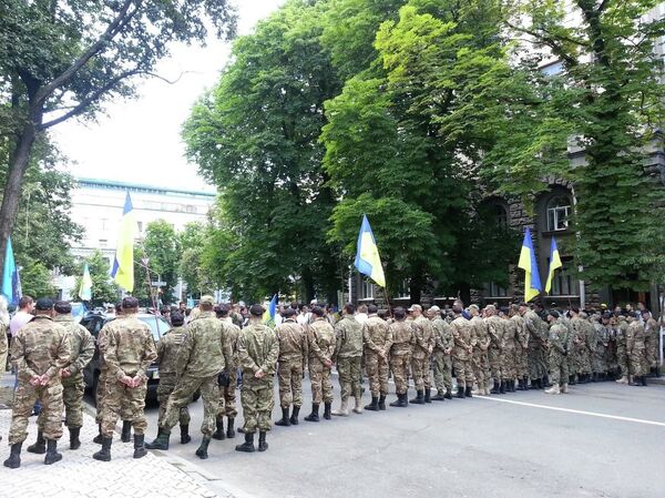 По словам выступившего со сцены командира батальона «Донбасс» Семена Семенченко, его бойцы не получают ни копейки, из тех денег, которые были выделены на АТО. Он также заявил, что в руководстве АТО, армии и погранвойсках есть большое количество «предателей». Ранее говорил о том, что члены подразделения собираются 29 июня приехать в Киев и прийти с развёрнутыми флагами к зданию администрации президента Украины, чтобы «посмотреть в глаза» Порошенко, а также высказать недовольство объявленным перемирием.