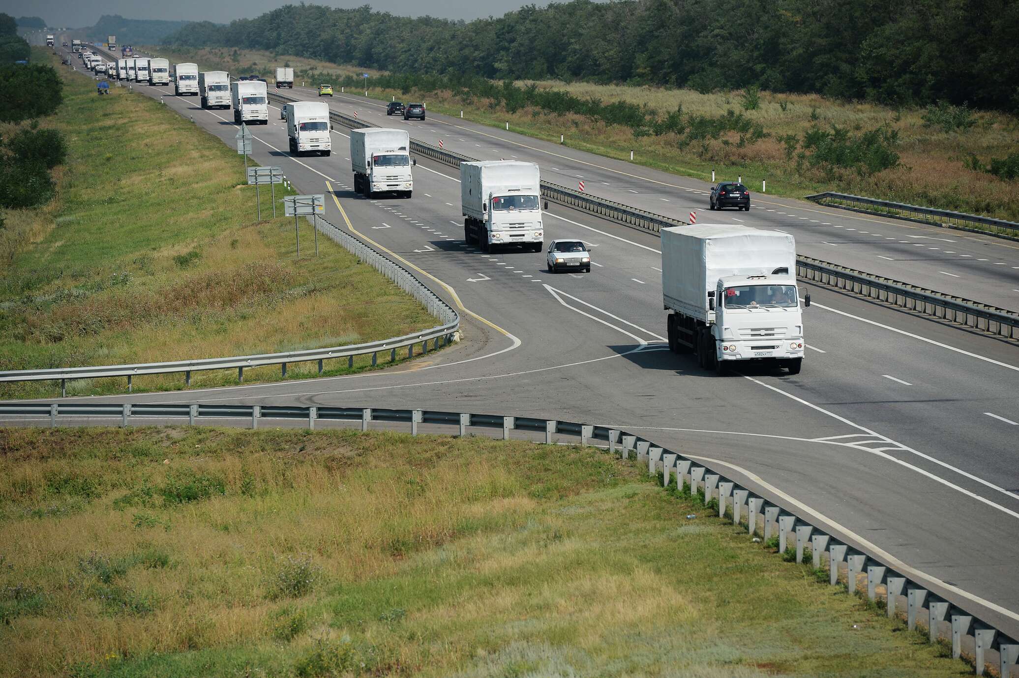Представитель Южного таможенного управления Роян Фарукшин сообщил, что 34 грузовика с российским гуманитарным грузом за сутки прошли таможенный контроль на российско-украинской границе.