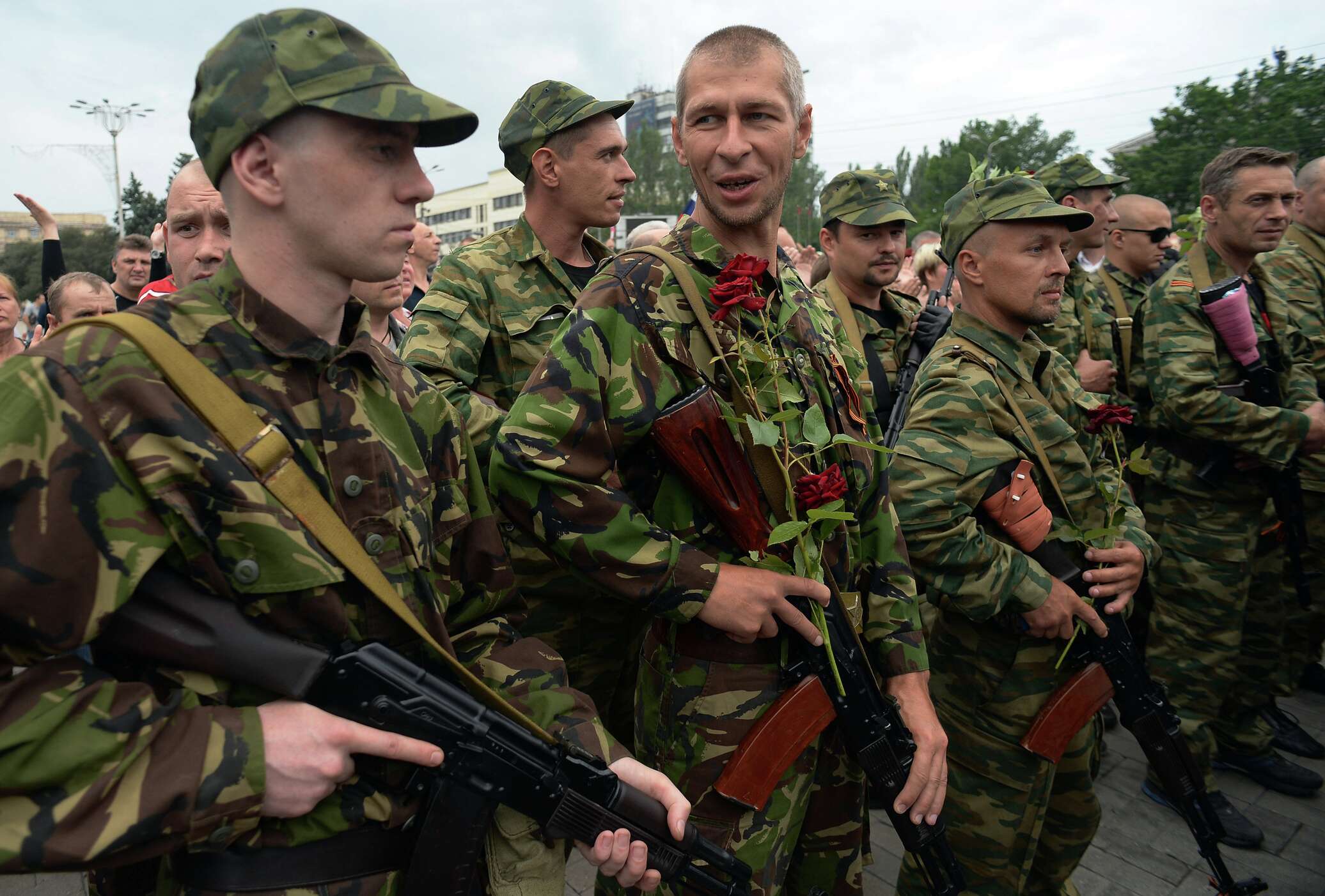 © РИА Новости . Максим Блинов / Перейти в фотобанкБойцы народного ополчения Донбасса приняли воинскую присягу в Донецке