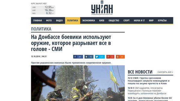 Украинские СМИ пытаются найти оружие, «разрывающее все в голове» - 14.10.2014 Украина.ру