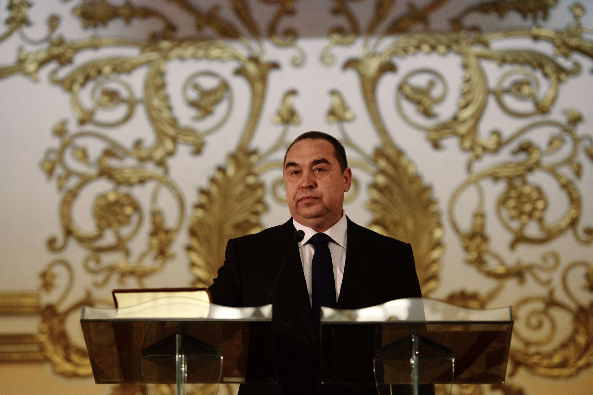 Дом Правительства ЛНР (бывшая Областная государственная администрация Луганской области, подвергшаяся авиаудару 2 июня) очень напоминает Смольный в 1917 году. По этажам носятся ополченцы с винтовками в руках, в приемной Плотницкого то и дело звонит телефон. Секретарь терпеливо объясняет: «Игорь Венедиктович занят, на совещании» Само здание охраняет несколько вооруженных людей — вход в Дом Правительства только по пропускам. У Общественной приемной, где заседает Плотницкий, стоит военный с ружьем. Сбоку уже выстроилась очередь из граждан, желающих попасть на прием к самому Плотницкому или его министрам. Несмотря на занятость, Игорь Венедиктович услышав, что я из Москвы, представляю российские СМИ, сразу же согласился на интервью. На вопрос о приоритетах Игорь Плотницкий заявляет, что начинать надо с возрождения духовности народа, именно славянской духовности, причем во всех сферах и всеми возможными мерами.