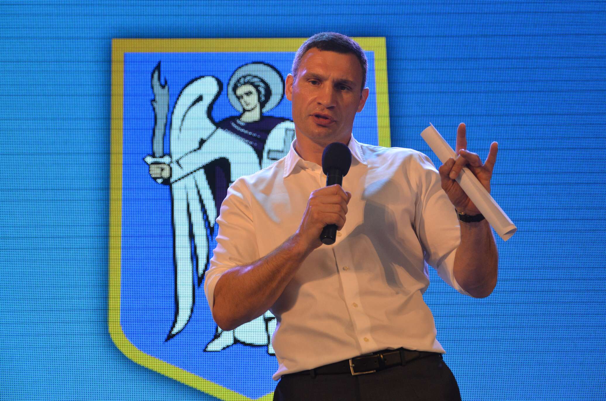 Во время общения с митингующими Кличко попытался сорвать силой балаклаву с головы одного из участников, в ответ на это народ стал скандировать «Ганьба»(укр. «позор» — ред).