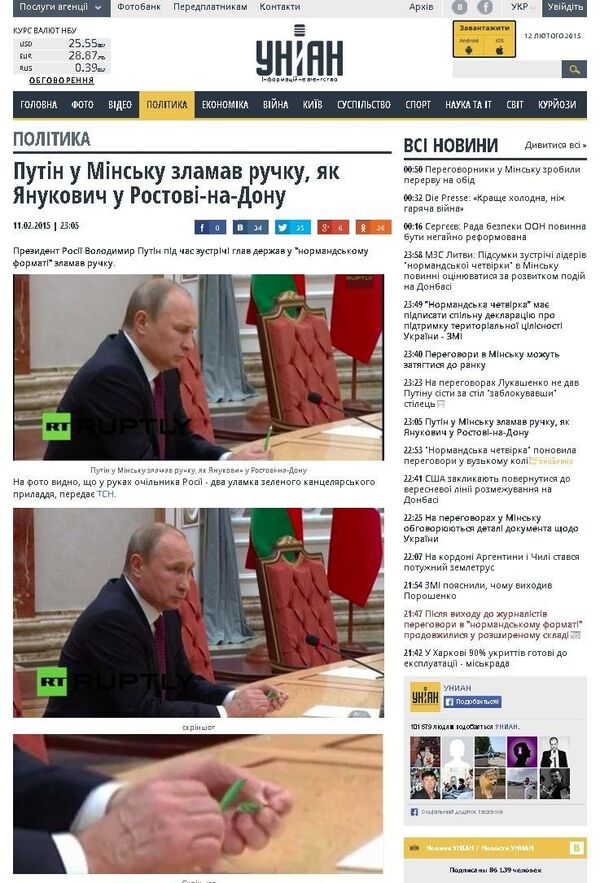 После закрытия ополченцами «дебальцевского котла», сломанный Путиным карандаш выглядит в глазах украинских патриотов почти как «пэрэмога». Ведь и Янукович когда-то от переизбытка нахлынувших на него чувств, сломал свой карандаш во время одной из пресс-конференций. Уж очень хочется видеть украинским пропагандистам в Путине Януковича. Хочется, но не можется. Из-за этого приходится прибегать к фальсификациям.