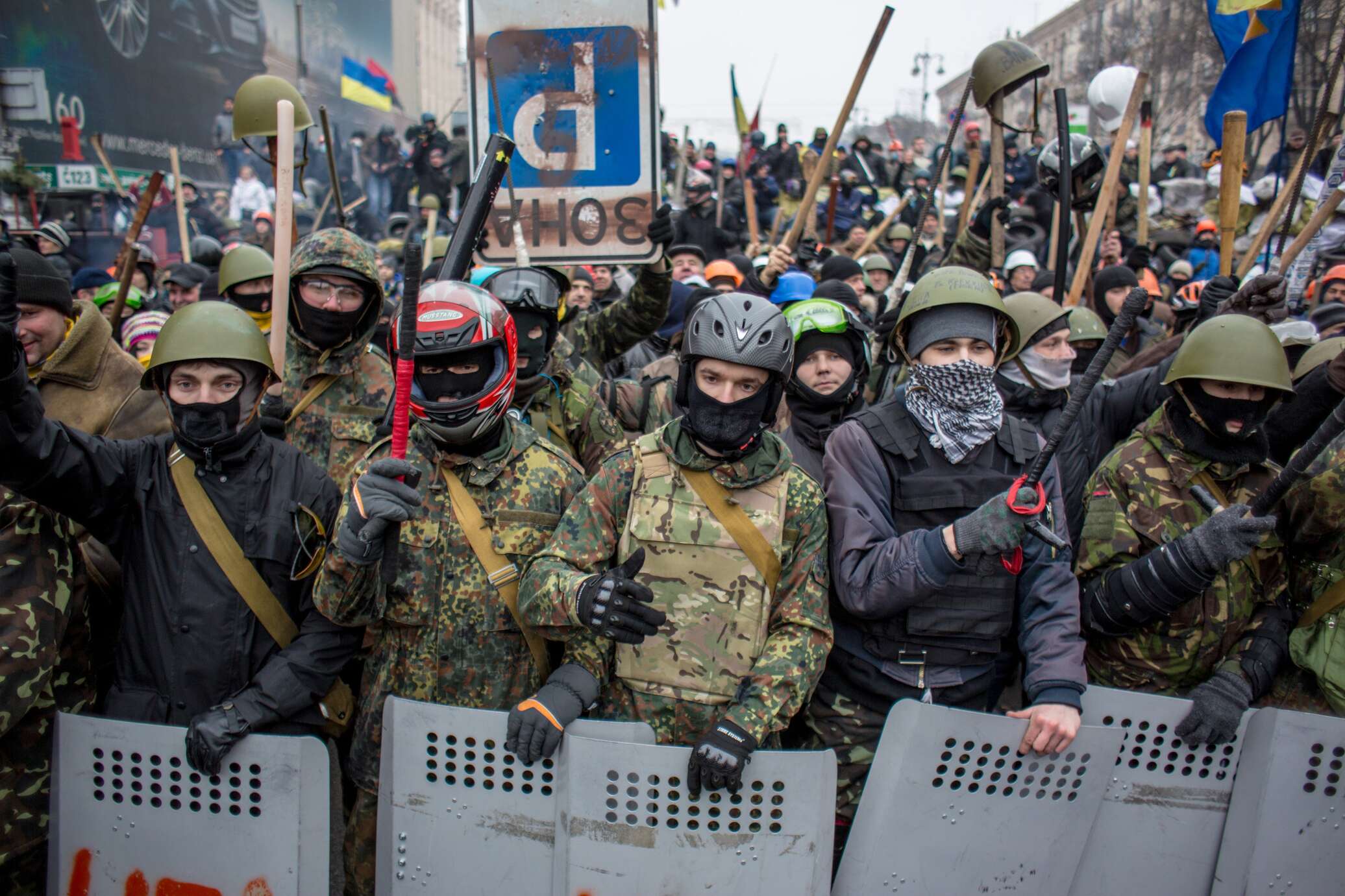 И в самом деле, молодые люди с Майдана патрулируют улицы с огнестрельным оружием в руках. Активными участниками Евромайдана с самого начала были хорошо подготовленные ветераны-афганцы. Все, кто с ними не согласен, подвергаются всё более жестоким избиениям.