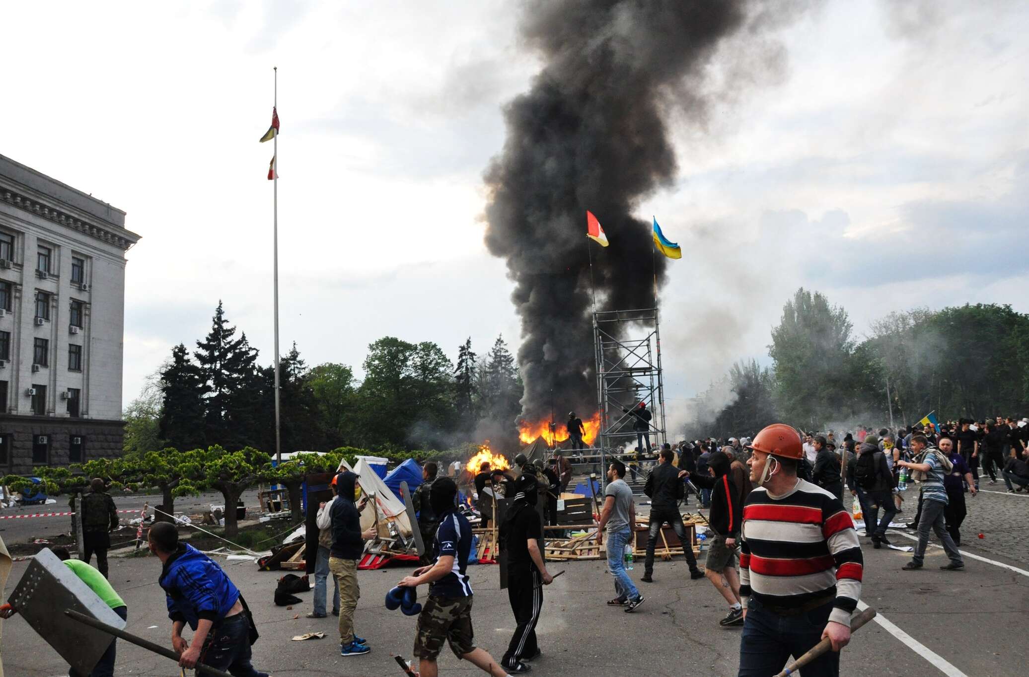 Акция, проводившаяся 2 мая прошлого года на Куликовом поле в Одессе активистами Антимайдана, обернулась трагедией после того, как против них выступили радикалы «Правого сектора» и футбольные «ультрас». По официальным данным, в пожаре в Доме Профсоюзов погибли около 50 человек, всего пострадавших — более 250.