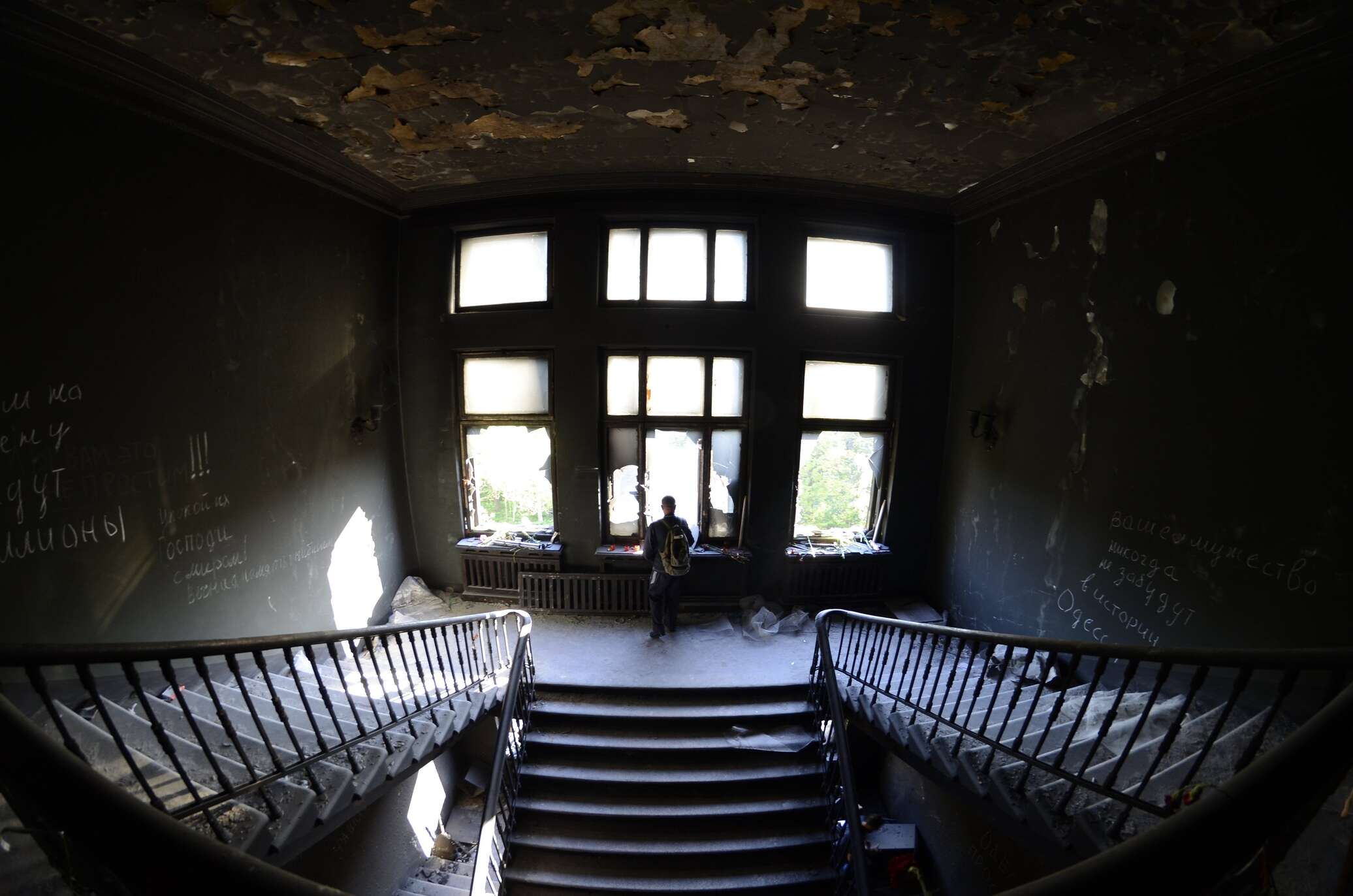 Разговоры о том, что люди внутри просто задохнулись от пожара — байки. Националисты стреляли. Они зашли внутрь. Они выламывали дверь в кабинет, в котором мы забаррикадировались. Но нашу дверь выбить они не смогли, мы хорошо укрепились. Мы слышали, как за дверью они кричали «Слава Украине! Героям слава! Добивай, не наших бьют!». Думаю, что они не были в трезвом состоянии. Анализы у них, конечно, не брал, но трезвые люди себя так не ведут.