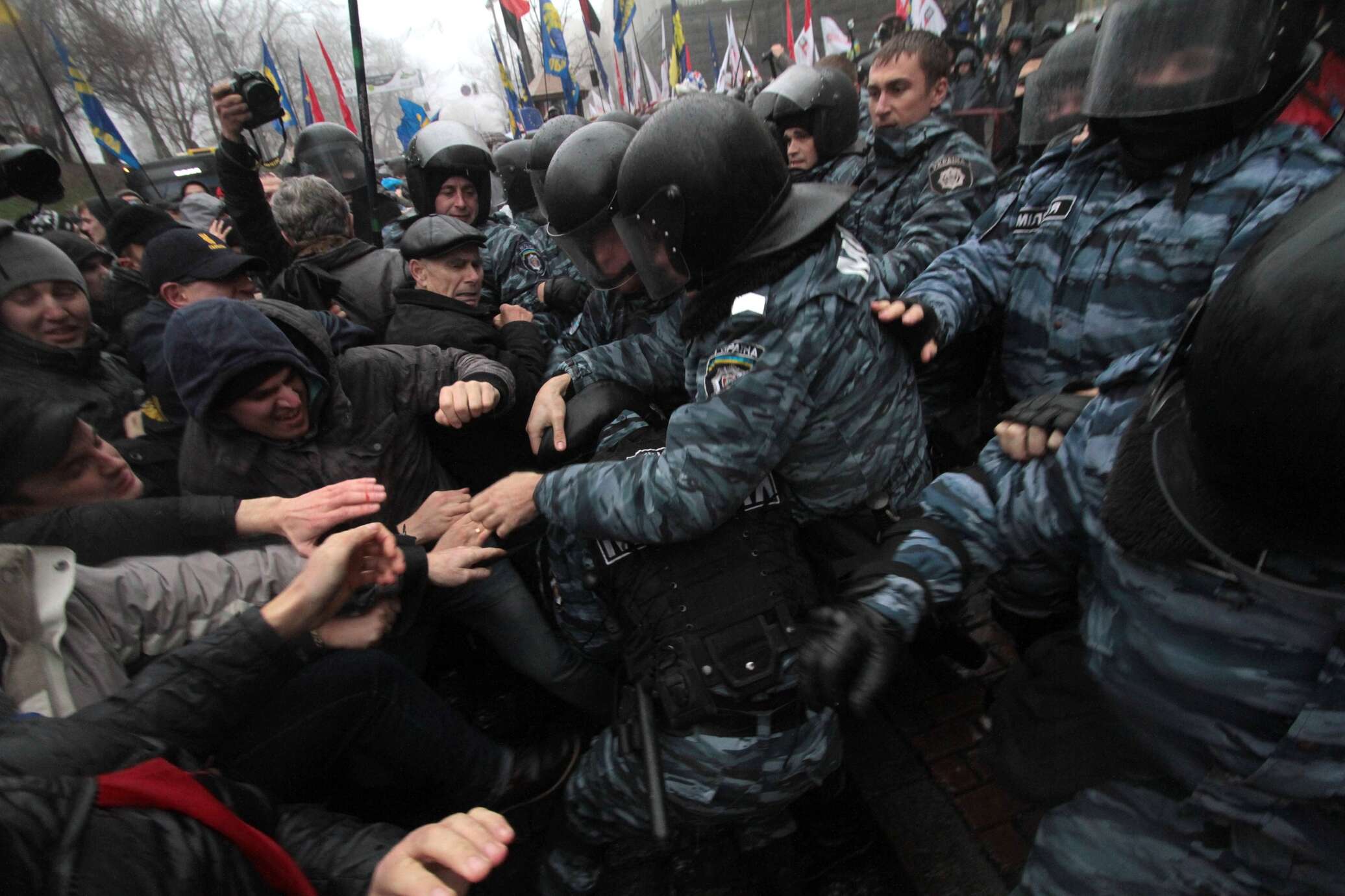 Возвращавшихся с митинга атаковали, милиция задержала трех нападающих. Через несколько минут подъехал автомобиль с наклейкой на номере «Правый сектор», и группа из нескольких человек отбила задержанных у милиции.