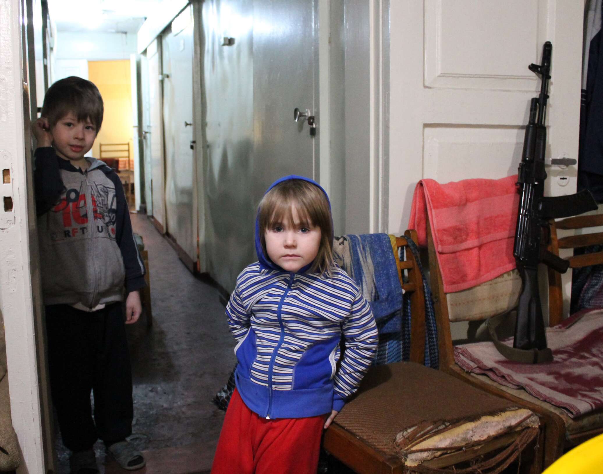 Юные жители Донецка в бомбоубежище, которое находится на территории шахты "Челюскинцев". Четыре семьи, потерявшие жилье в результате артиллерийских обстрелов украинскими силовиками города Донецка, намерены встречать Новый 2015 год в помещении бомбоубежища.