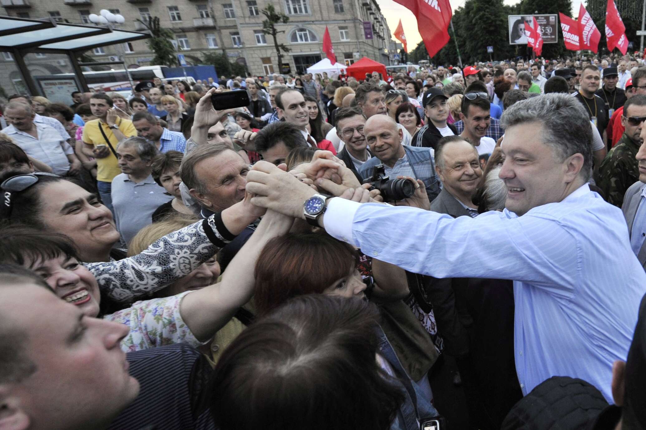 © РИА Новости . Николай Лазаренко / Перейти в фотобанкПоездка кандидата в президенты Украины Петра Порошенко в Черкассы