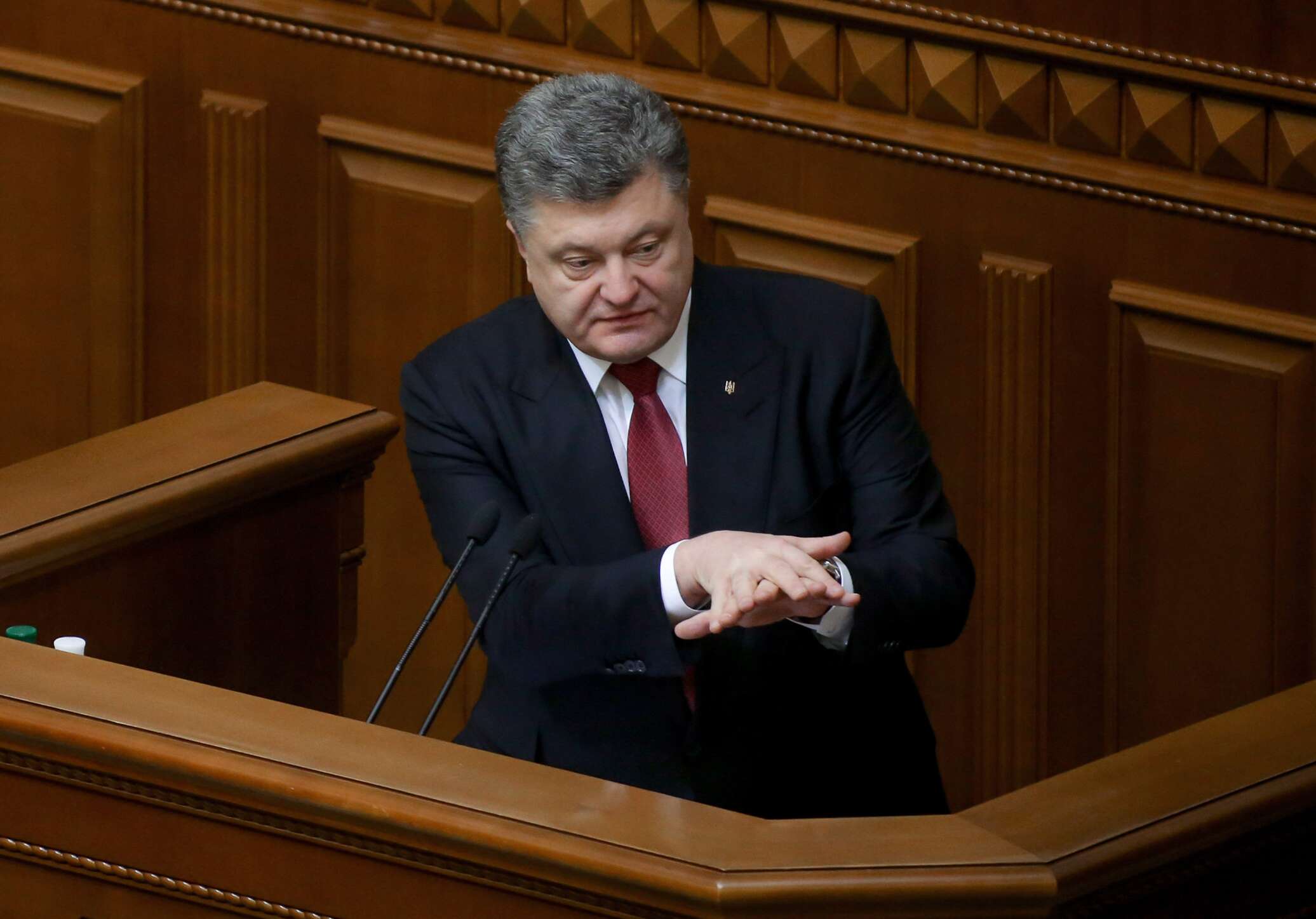 Свою речь Порошенко начал с того, что выразил неудовлетворение результатами своей работы и деятельностью парламента и кабмина. Но больше всех недоволен, по его словам, народ.