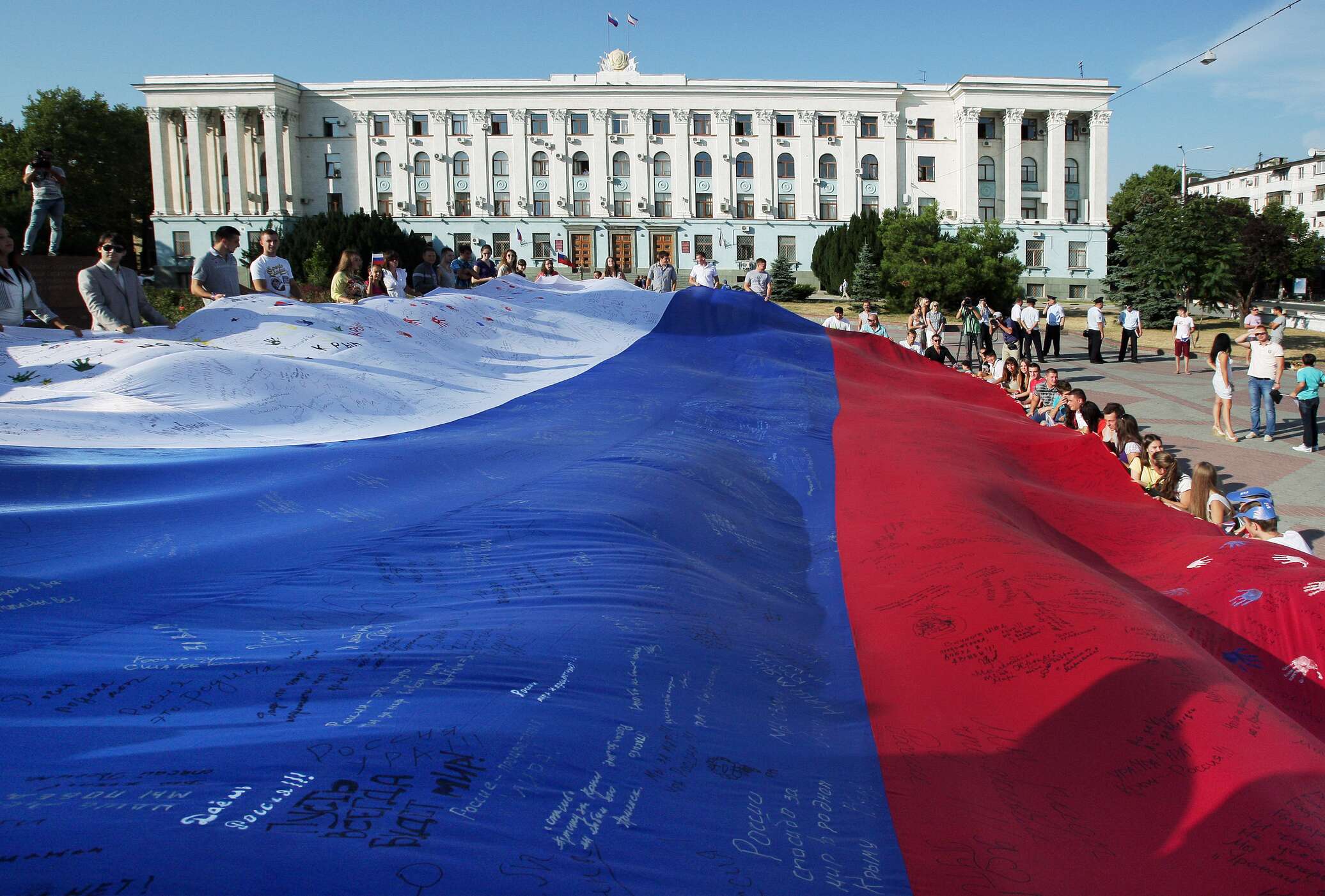 Далее появился кадр с картой полуострова, отображенной на звездном небе, а в финале — логотип NASA и подпись, что Крым — это Россия.