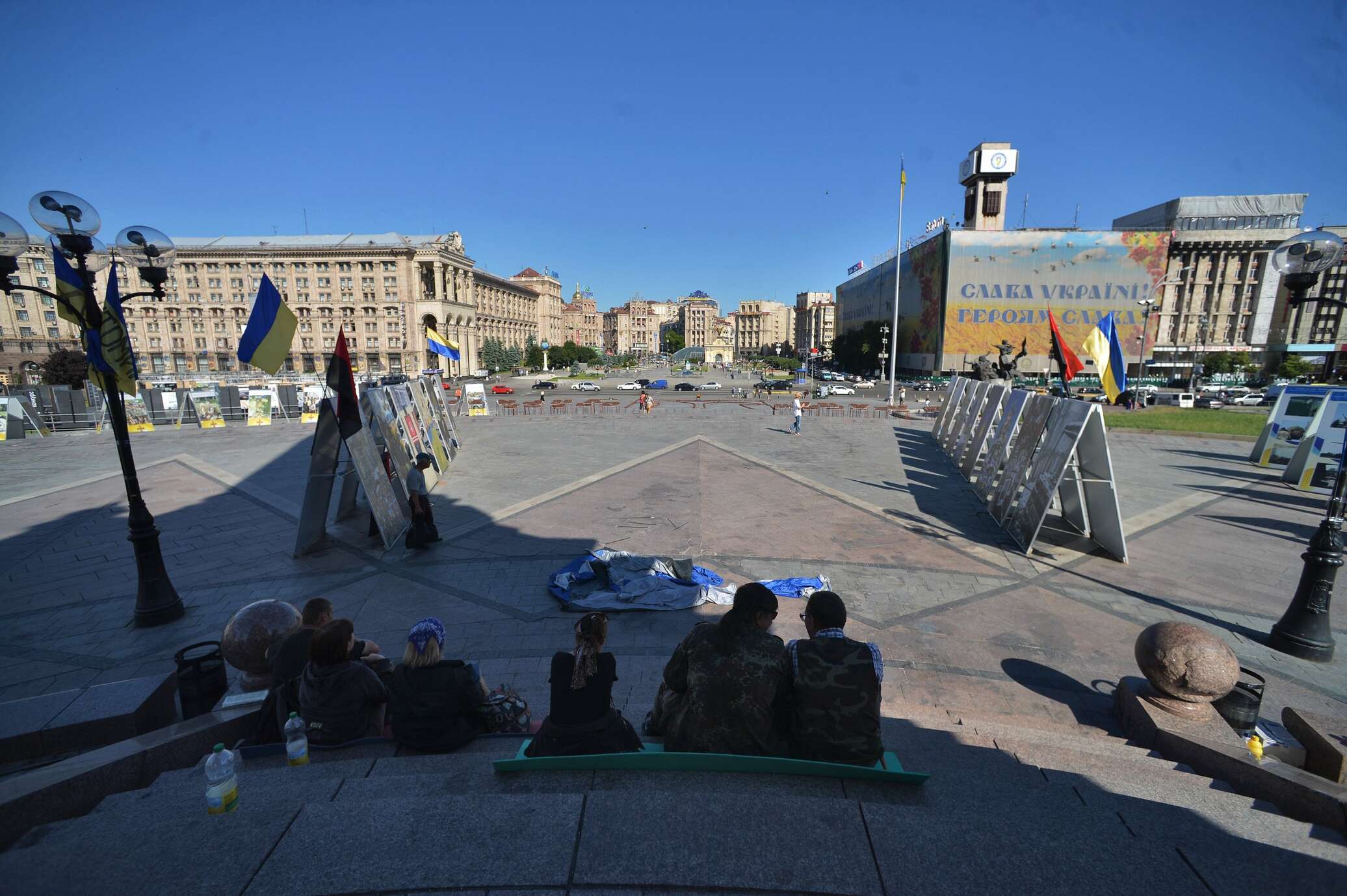 Киев заполонен рекламой. Она везде: на каждой улице, в каждом закоулке, в метро, на заборах. Из-за нее не виден светофор, дом, название улицы, церковь, небо, солнце. Рекламируется, продается и покупается все — цемент, песок, обувь, еда, ум, честь, совесть. Город опутан проводами, словно колючей проволокой, жизненное пространство сужено до минимума, в него вгрызается пустота и страх.