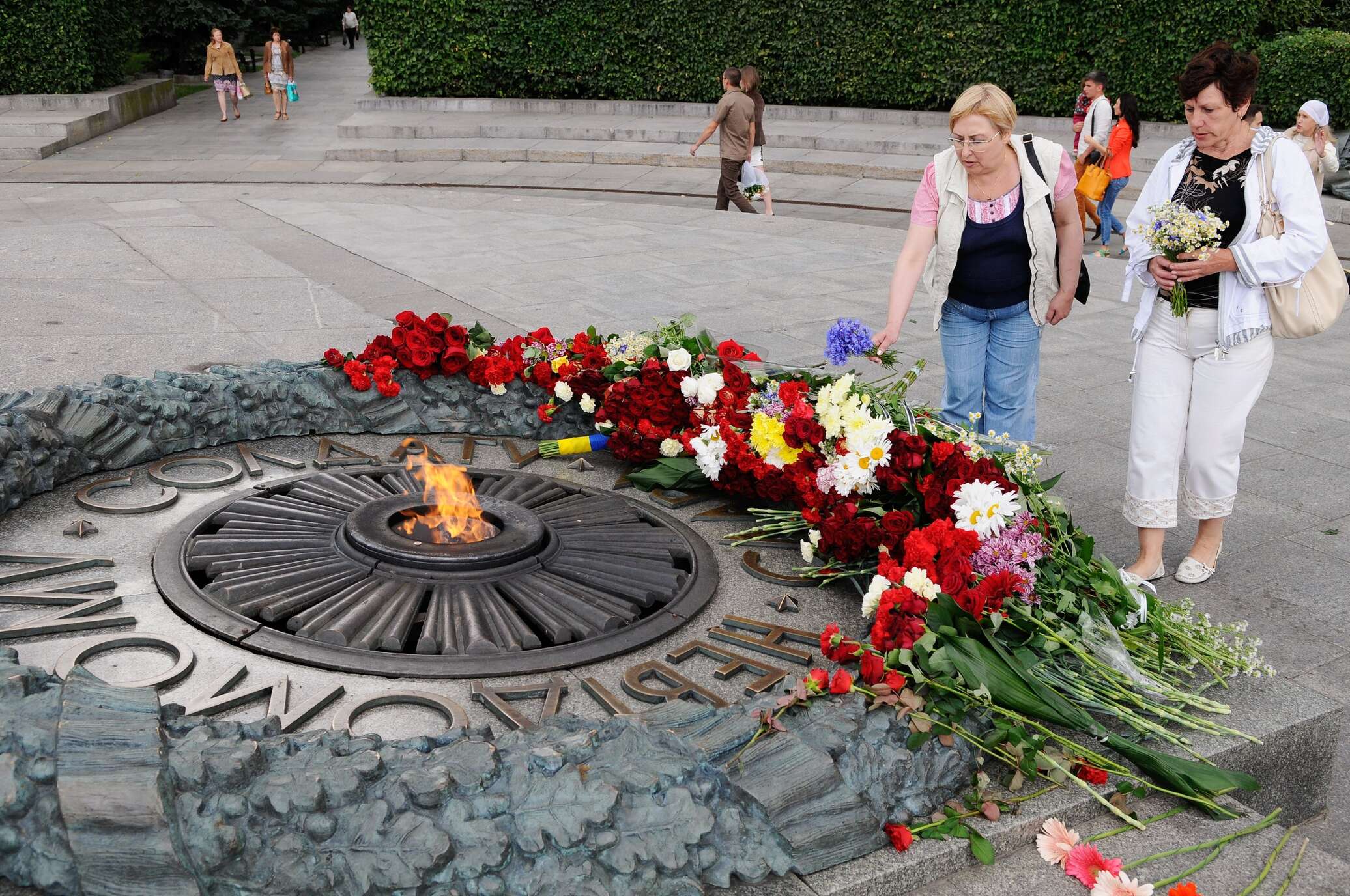 «24 августа 2015 года по бокам от Вечного огня могут появиться уродливые плиты с плохо набранными надписями: «Герой Другої світової війни» и «Герой Антитеррорістичної Операції». На входе годы 1941 и 1945 собираются заменить на «Слава Украине!» и «Героям Слава!», — сообщал общественный деятель Дмитрий Гурин.