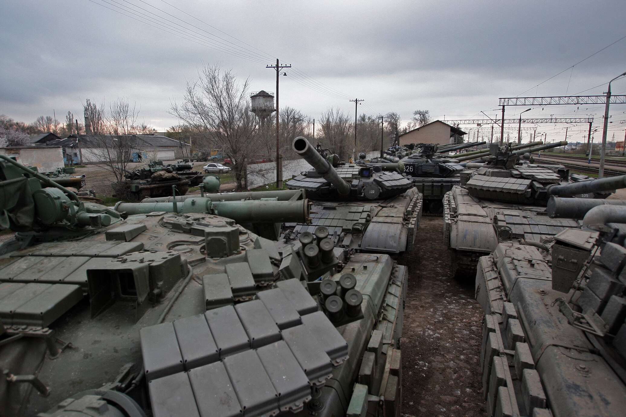 © РИА Новости . Тарас Литвиненко / Перейти в фотобанкТанки войск береговой обороны Украины покидают территорию Крыма