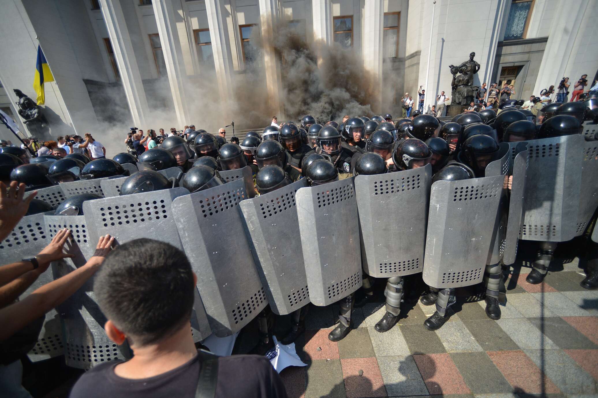 С места столкновений митингующих и сотрудников МВД передает собственный корреспондент издания «Украина.Ру».