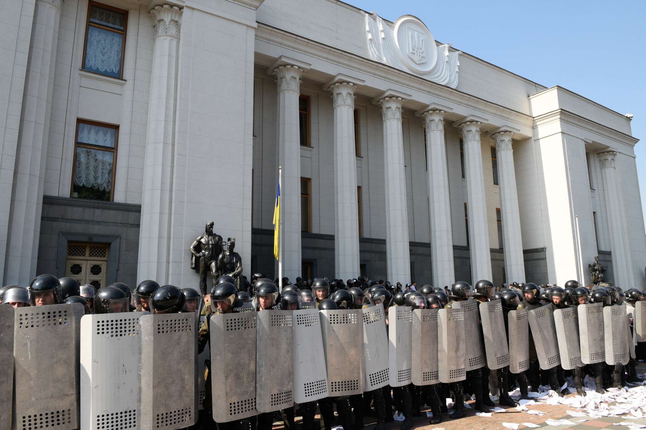 Саша рассказал нам то, что помнит. Ребята из Нацгвардии и милиция стояли под Верховной Радой кордоном, вплотную к митингующим. Был приказ не подпускать их к зданию. И это понятно — многие митингующие уже изначально были настроены агрессивно.