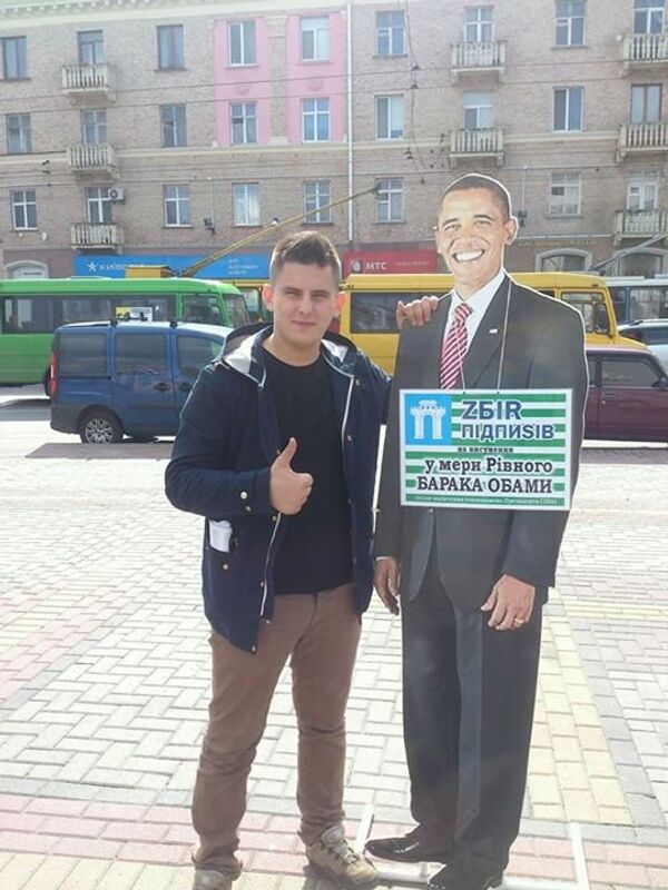 В центре города Ровно инициативная группа установила портрет президента США Барака Обамы и начала сбор подписей за избрание его мэром города
