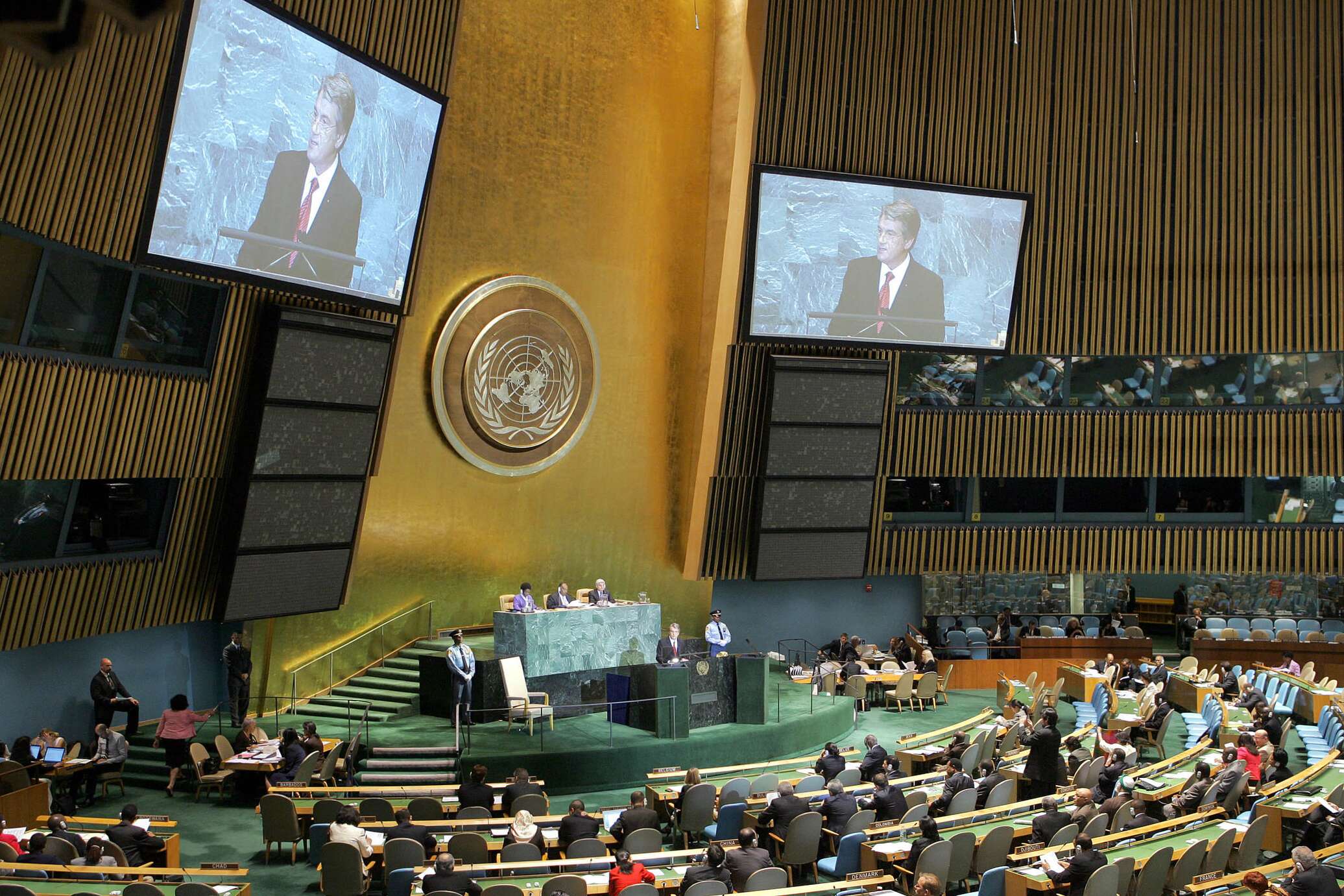 Ливийский лидер Муаммар Каддафи в 2009 году выступил перед Генеральной Ассамблеей впервые за 40 лет. Облачённый в бедуинское одеяние, Каддафи проигнорировал 15-минутный регламент выступления и продолжил говорить в течение полутора часов. В кульминационный момент своего выступления Каддафи публично порвал копию Хартии ООН, заявив, что больше не признаёт её власть.