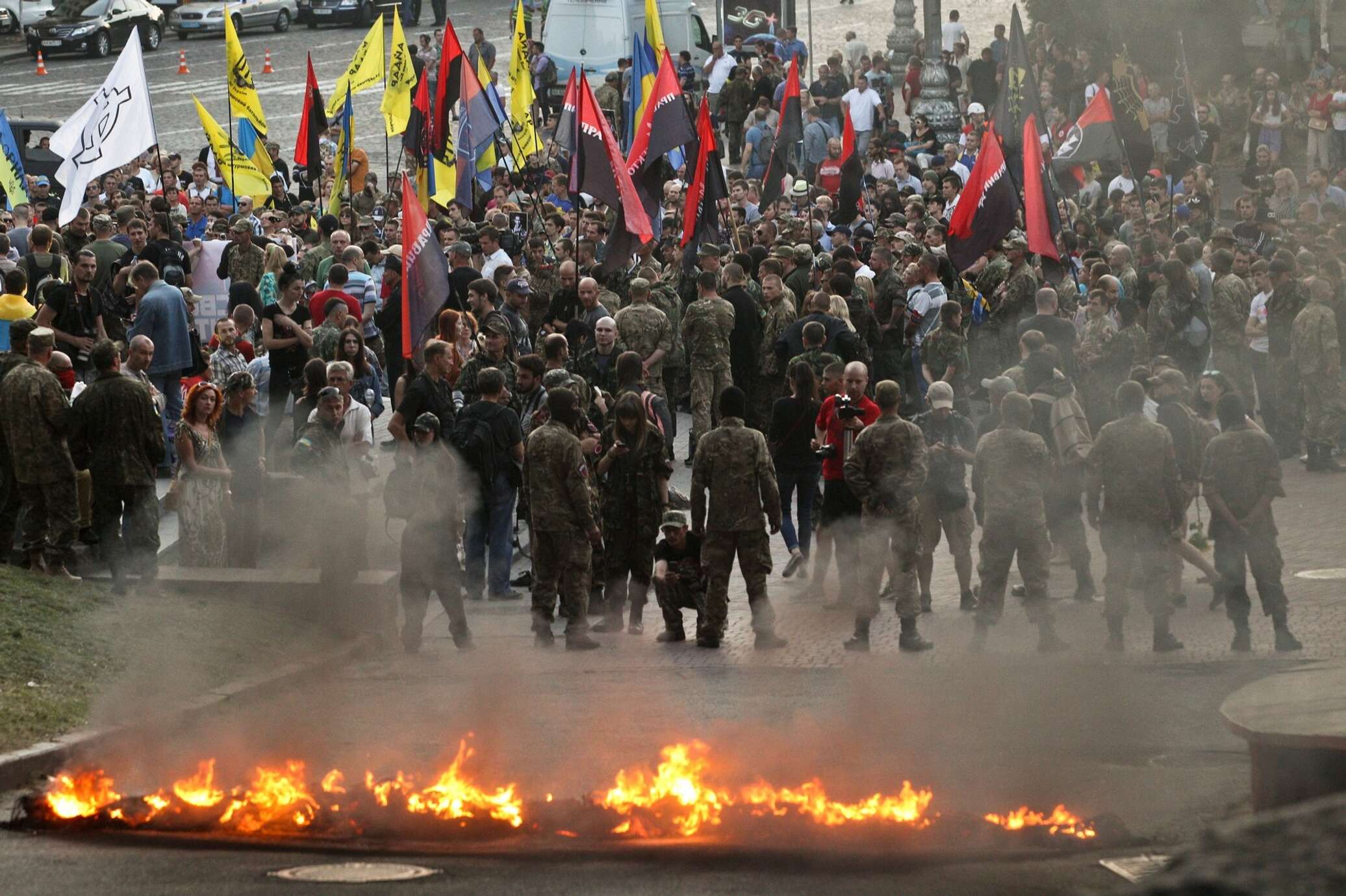 Над премьером Арсением Яценюком и главой МВД Арсеном Аваковым националисты также пообещали устроить расправу. После этого зазвучали призывы к третьему майдану.