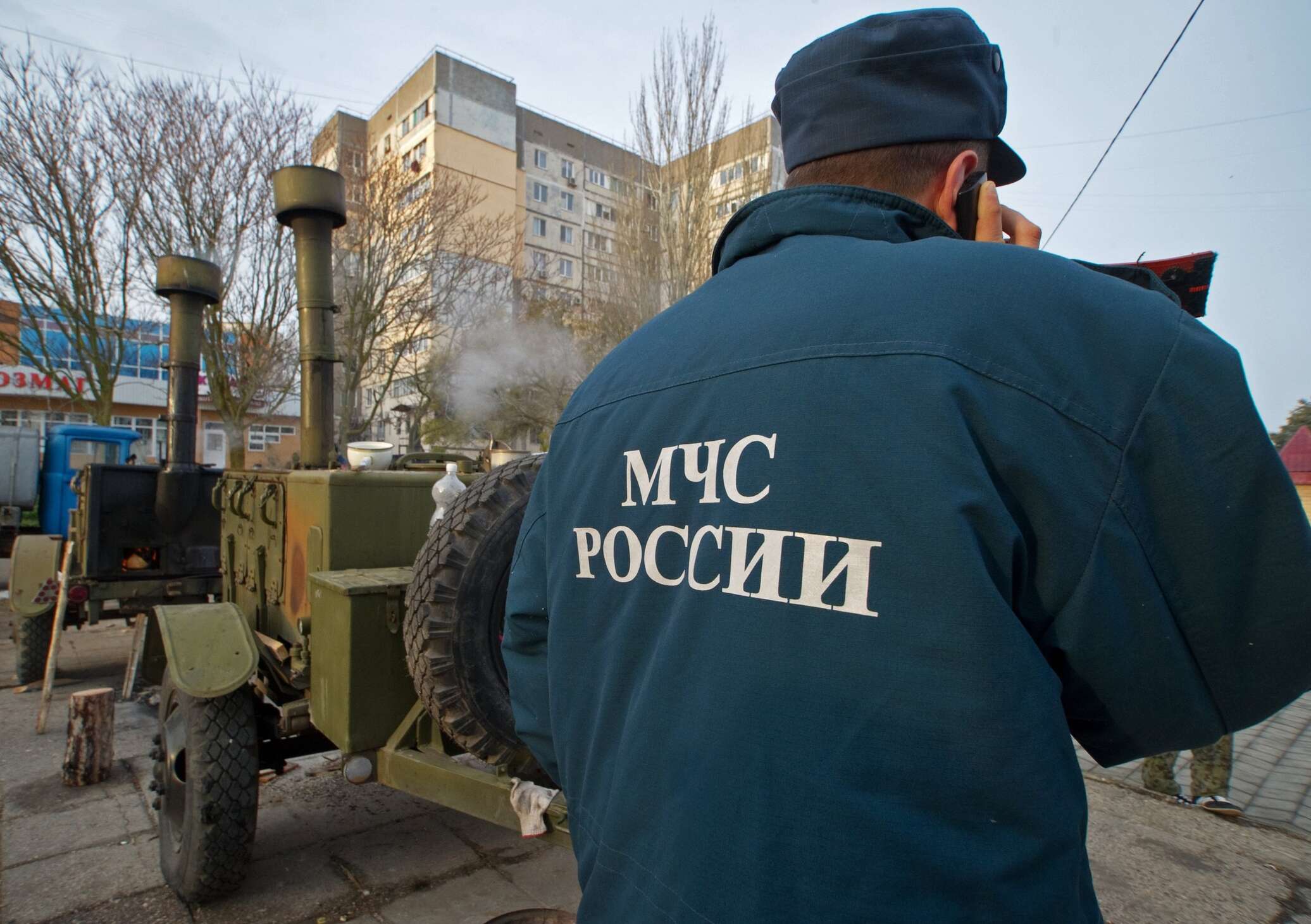 Полевые кухни и палатки МЧС развернуты в городе Щелкино на северо-востоке Крыма