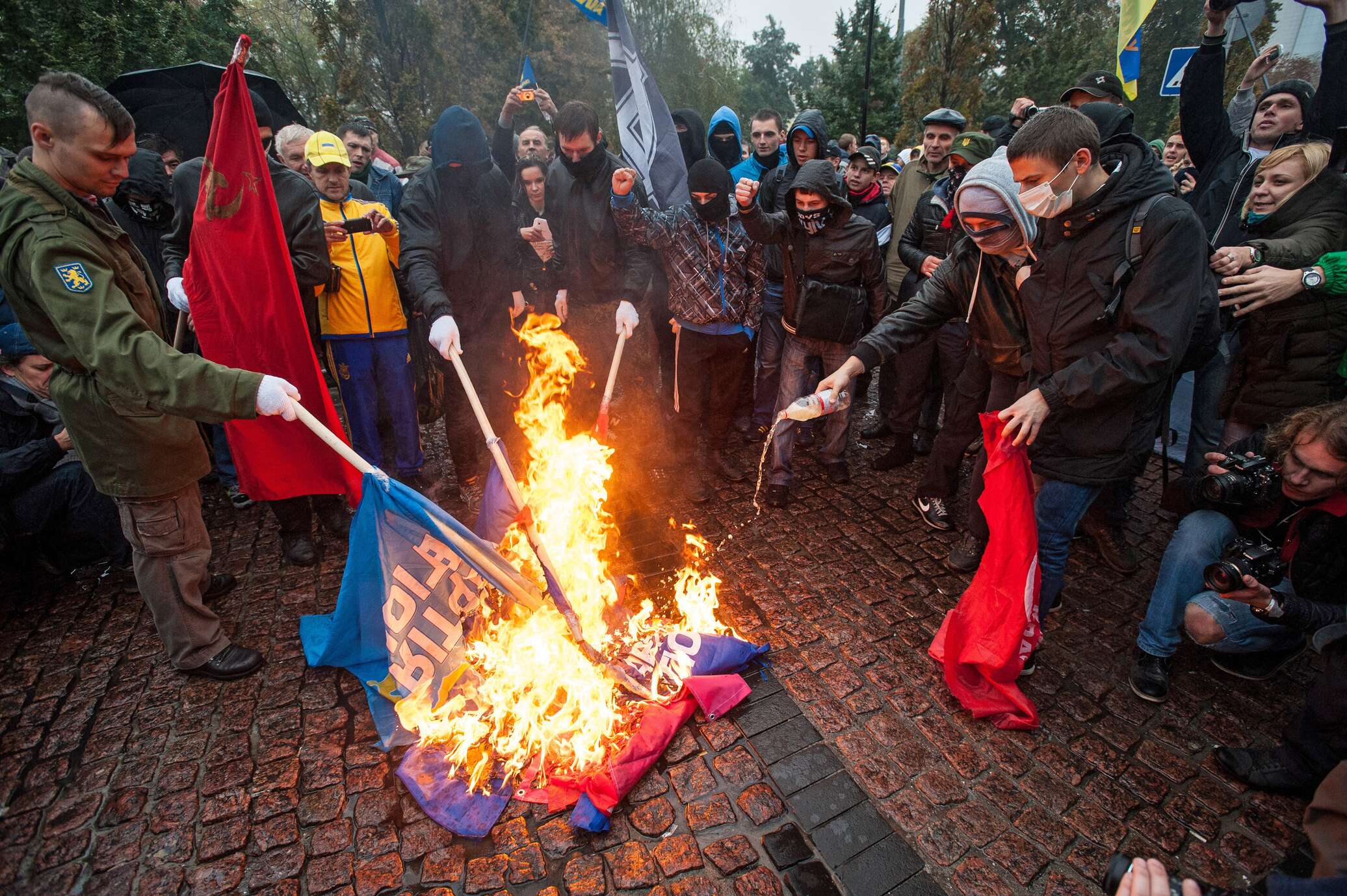 На факельном марше в Черкассах неонацисты сожгли флаг России