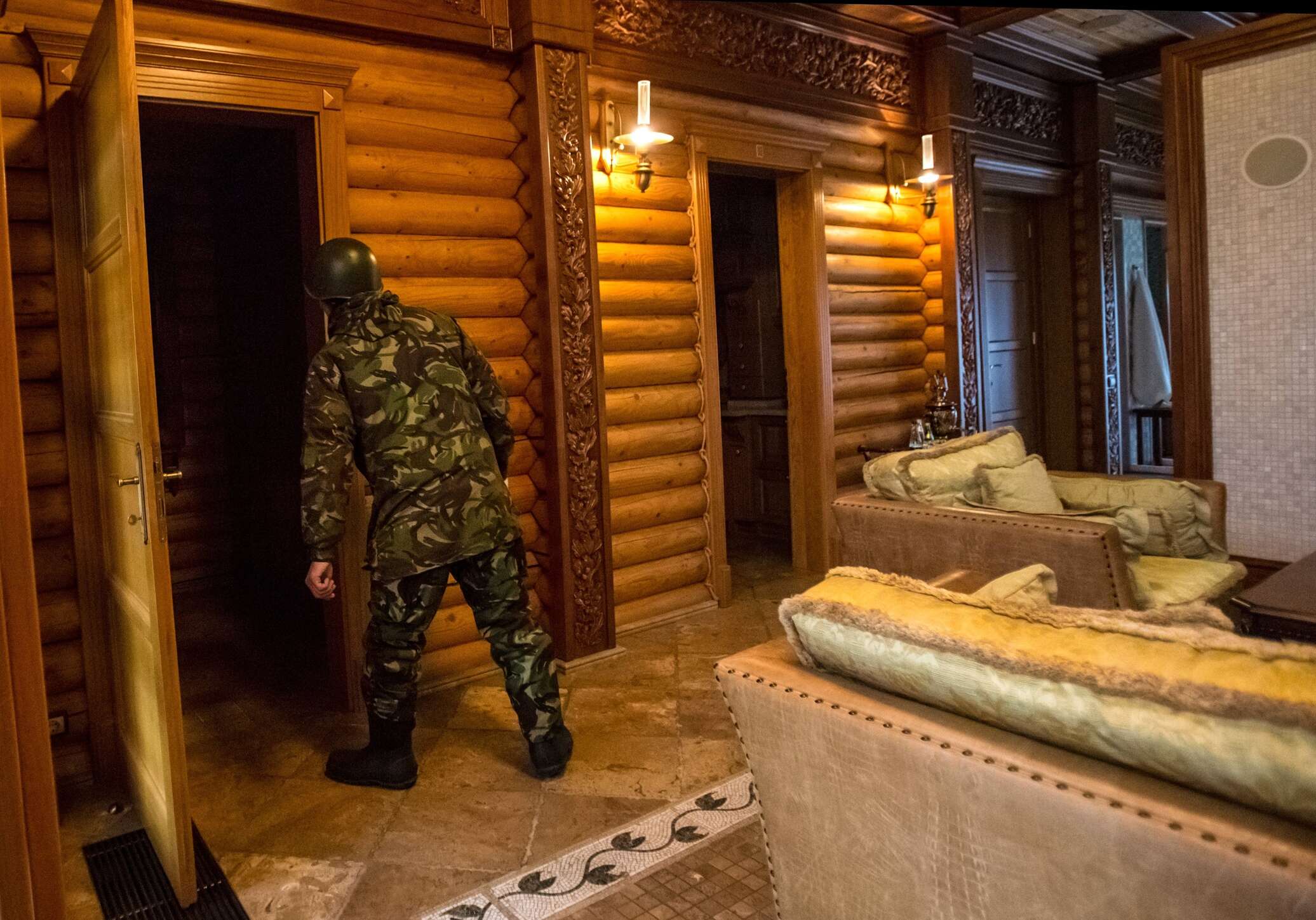 Последним охранником строения были боевики батальона «Киев-2». После них в здании не осталось даже розеток. Мародерство обнаружил комендант Межигорья два дня назад и сообщил в Генпрокуратуру. Осмотрев имущество, следователи вспомнили, что ранее ГПУ распорядилась опечатать помещение и взять его под государственную охрану.