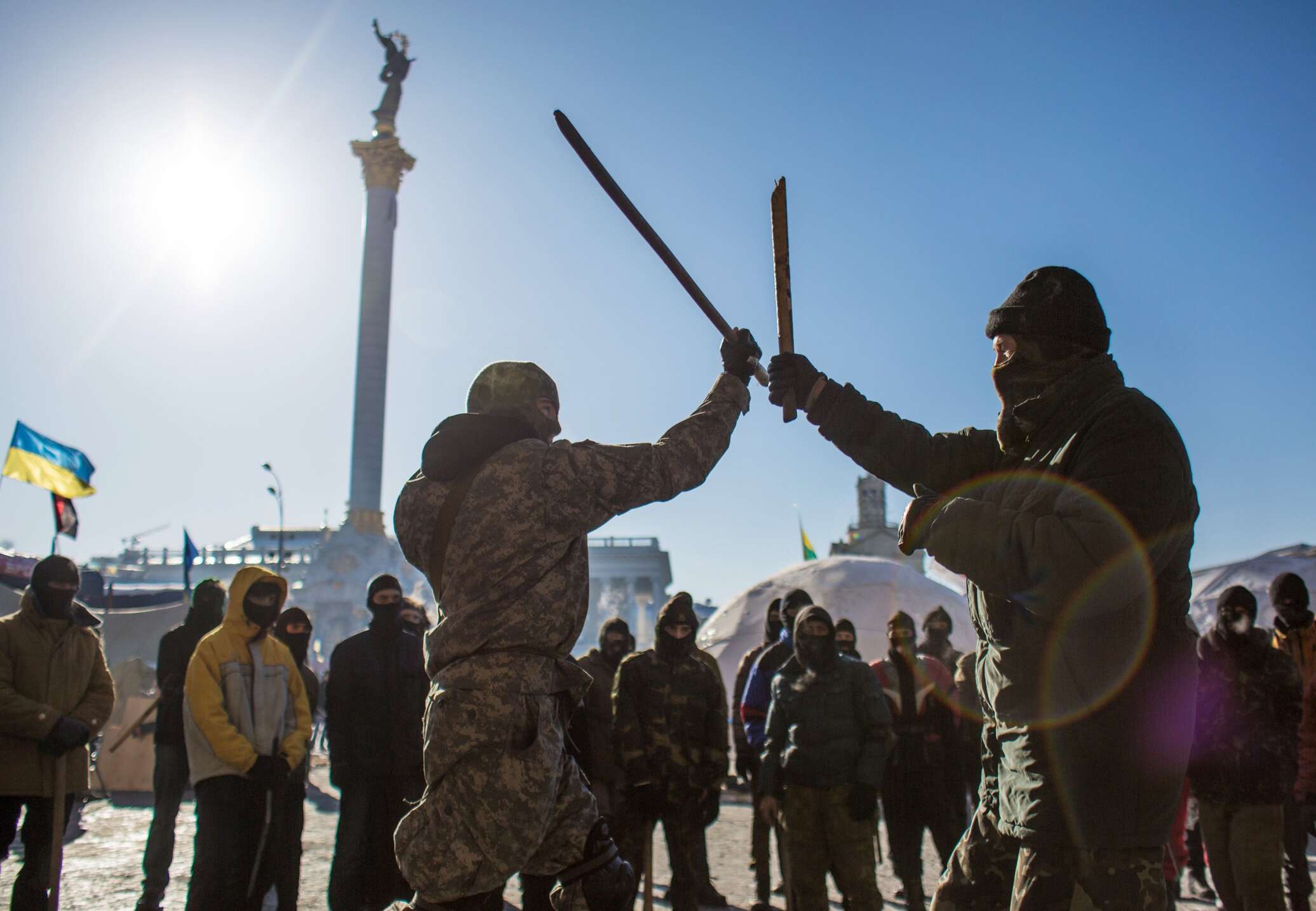 Протестующие осваивают нелегкий труд заготовки метательных снарядов из брусчатки главной площади Киева. Горит Дом Профсоюзов, его пытаются удерживать до последнего (по словам Захарченко, именно в ДП был один из складов оружия майдановцев). Две ночи пройдут в непрерывном ожидании зачистки.