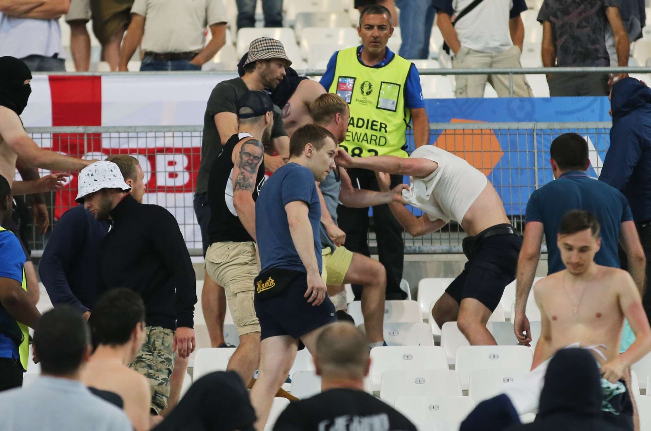 Это не первая драка между фанатами. Любители футбола в течение нескольких дней устраивают беспорядки в Марселе. Кроме того, англичане напали на автобус с российскими болельщиками, который прибыл в Марсель на матч между Россией и Англией.