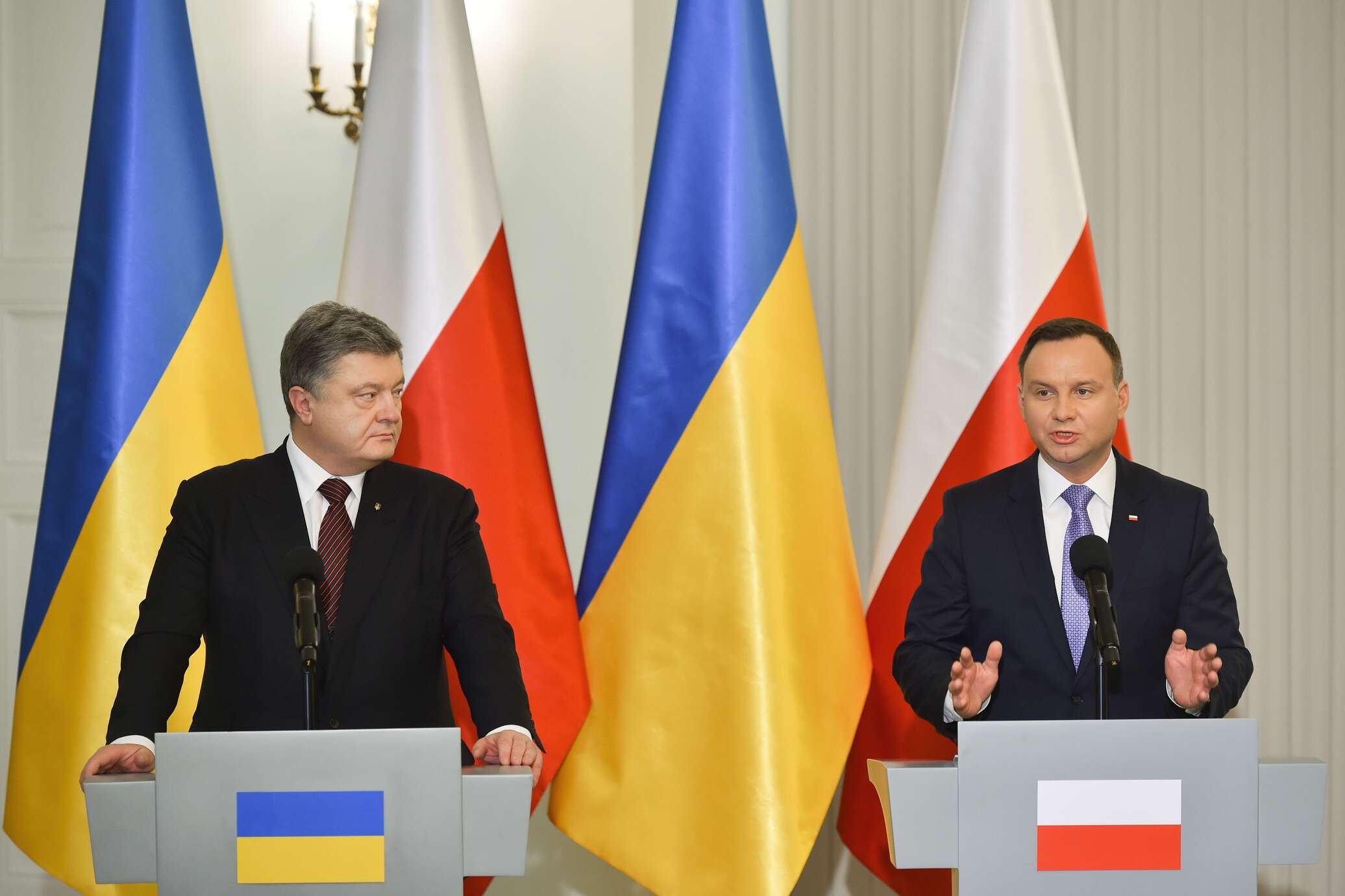 Как говорится в сообщении на сайте администрации президента Украины, Порошенко обсудил с президентом Польши Анджеем Дудой ситуацию с демонтажом памятника бандеровцам возле Перемышля. Беседа состоялась в рамках телефонного разговора Порошенко с Дудой по случаю годовщины Конституции Речи Посполитой.
