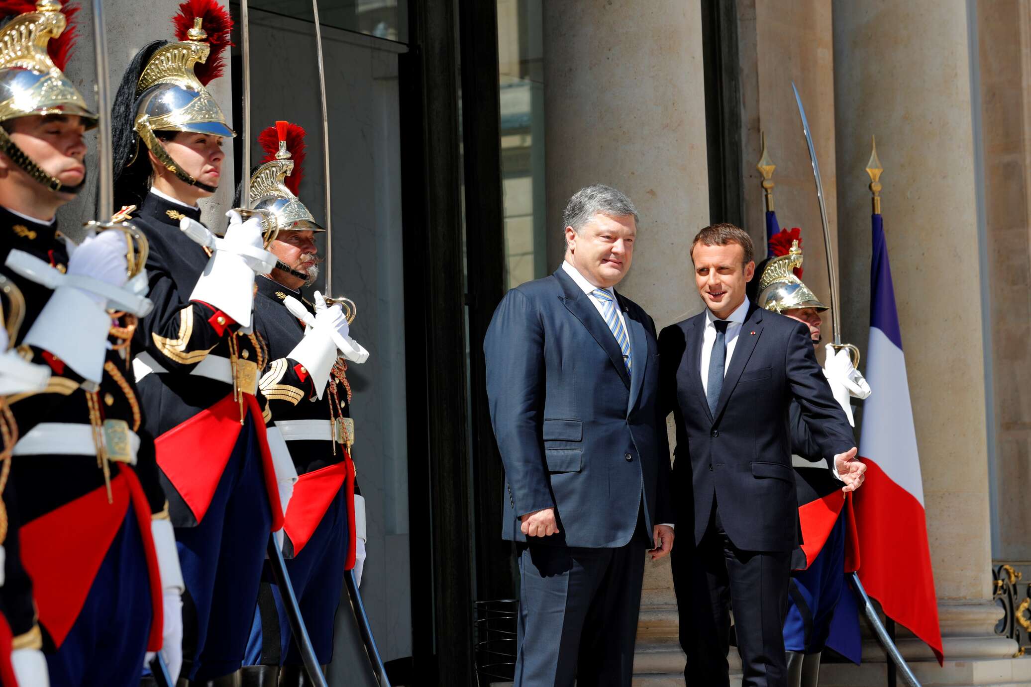 «Я подтвердил президенту Порошенко мое желание придерживаться минского процесса. Франция всегда поддерживала суверенитет Украины в рамках границ, признанных на международном уровне. Мы, как и наши партнера из ЕС, не признаём присоединения Крыма к России», — заявил президент Франции.