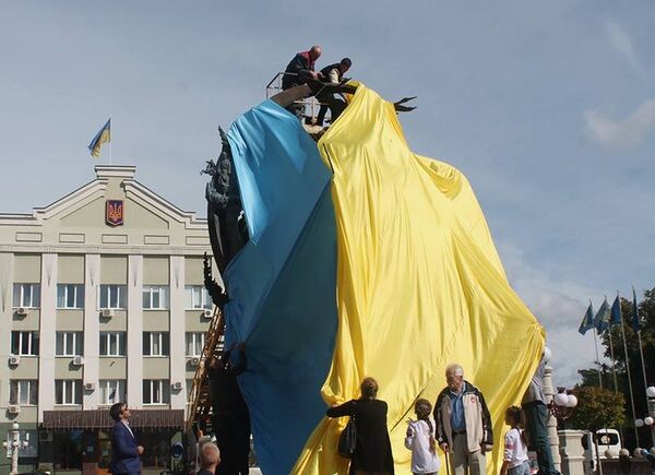 На открытии памятника автору сборника «Кобзарь» Тарасу Шевченко пришлось разорвать сине-жёлтое полотно из-за оплошности организаторов