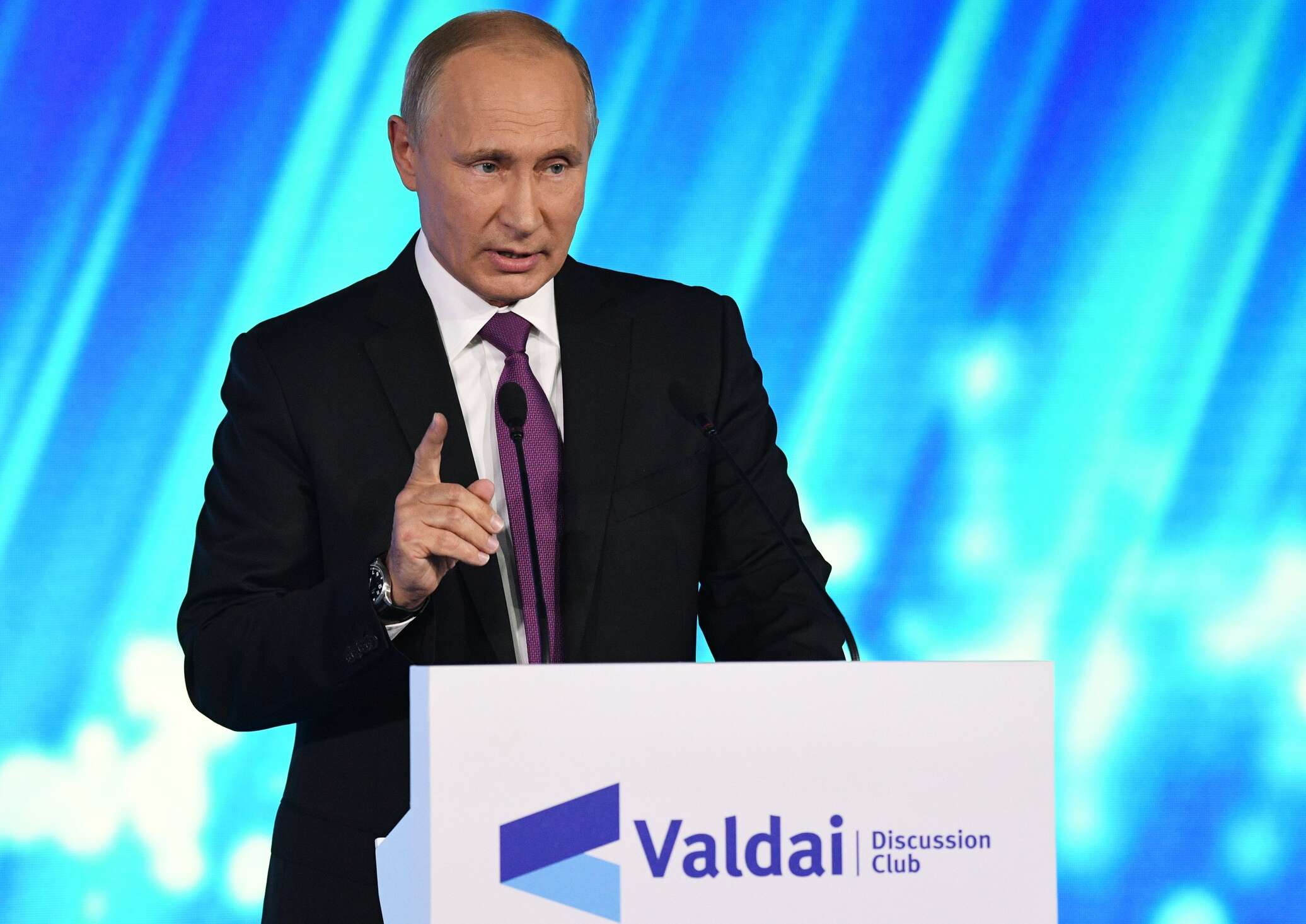 © РИА Новости . Григорий Сысоев / Перейти в фотобанкПрезидент РФ В. Путин принял участие в итоговой сессии Международного дискуссионного клуба "Валдай"