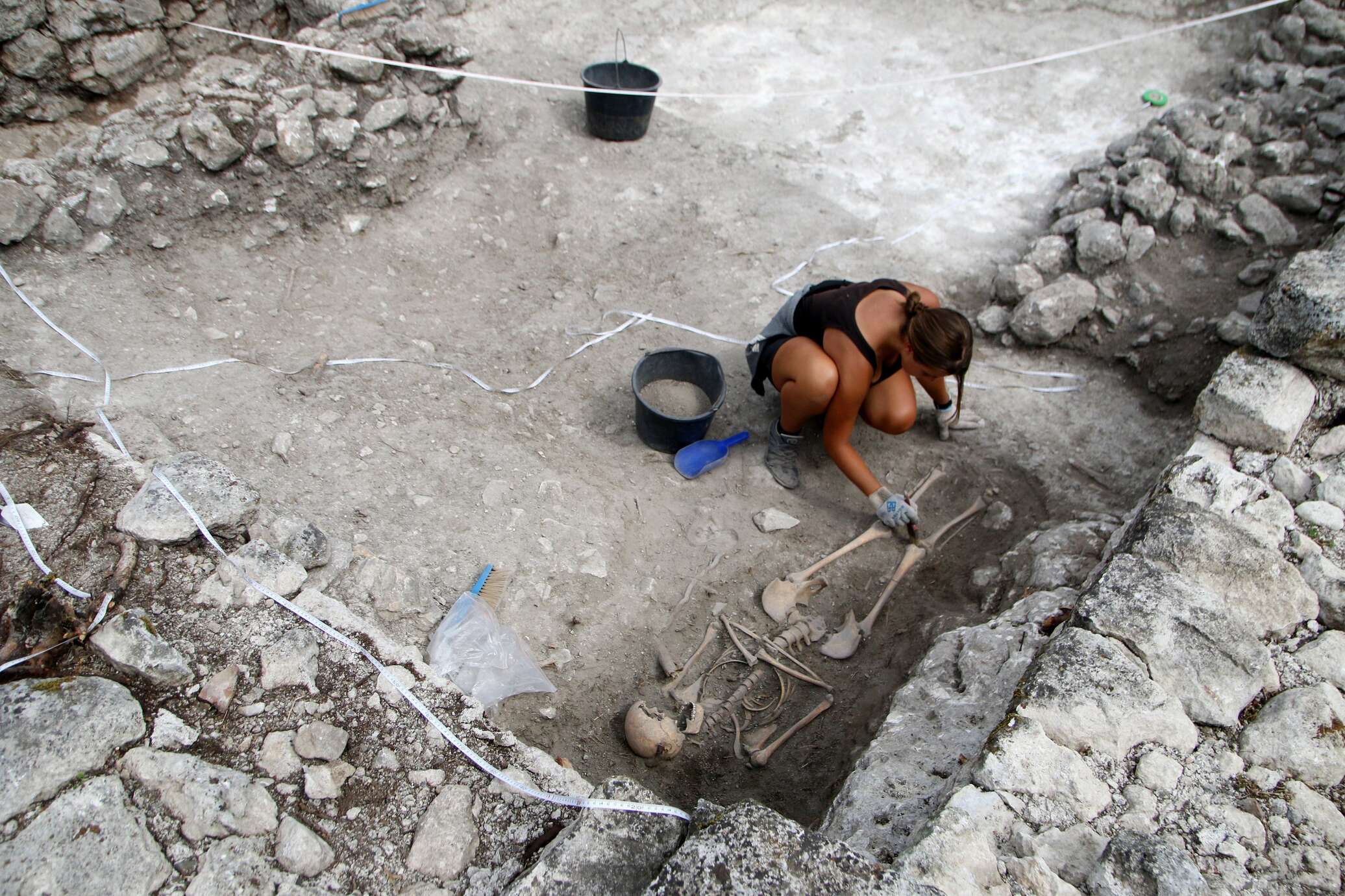 «Найден великолепный экспонат, нечасто встречаются такие находки. Посмотрите, как хорошо отесаны известняковые плиты, из которых выполнены стены, как тщательно они подогнаны друг к другу», — подчеркнула ученый.