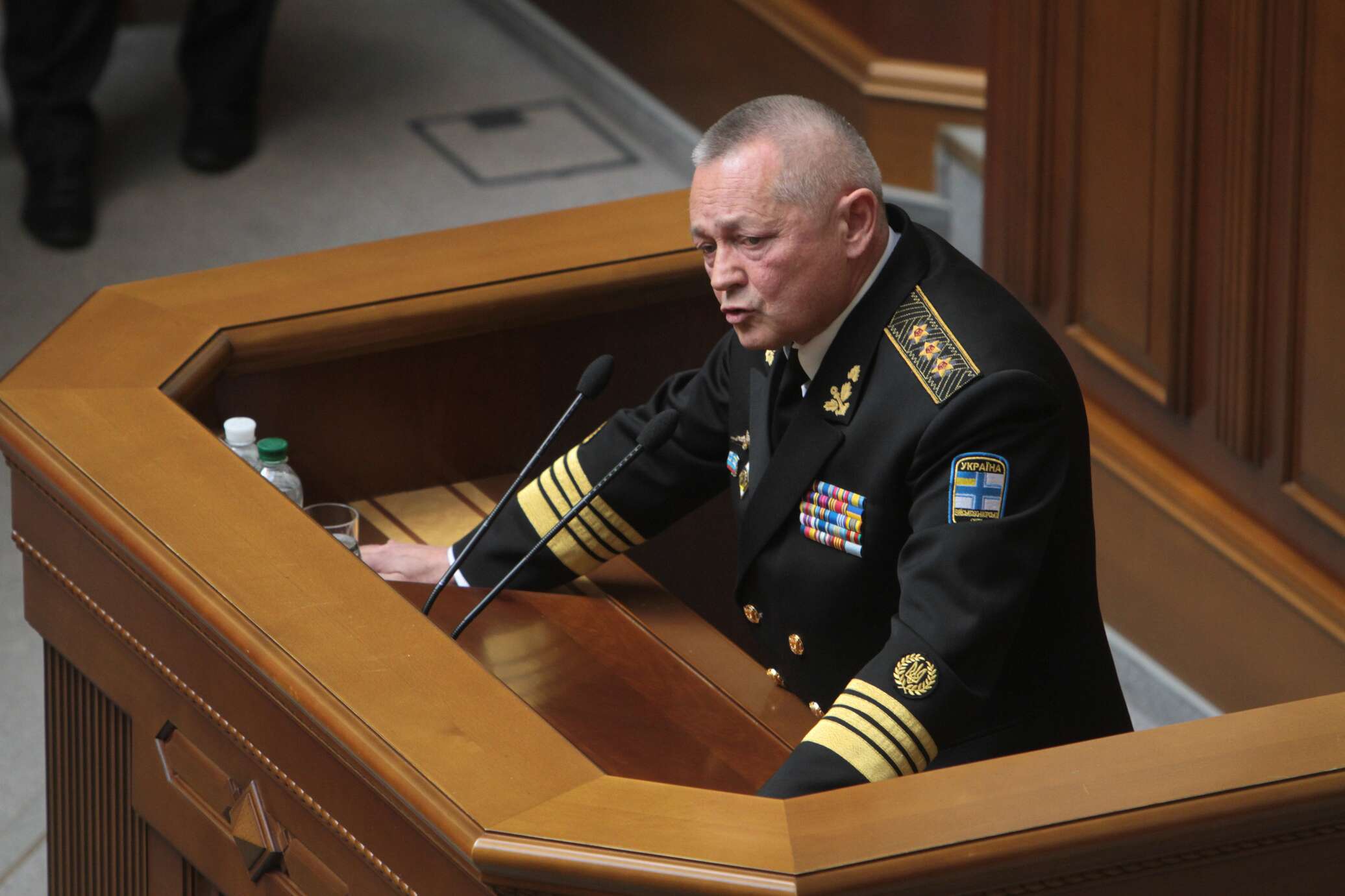 Адмирал также рассказал, что на заседании СНБО 28 февраля 2014 года его вопрос о развертывании войск встретил сопротивление со стороны лидера партии «Батькивщина» Юлии Тимошенко, которая заявила, что этот шаг только спровоцирует Россию, а нужно думать не только о Крыме, но и о всей Украине. Премьер-министр страны Арсений Яценюк поддержал её позицию и объявил, что не позволит министру обороны развязать третью мировую войну, при этом он не ответил на вопрос Тенюха, ознакомятся ли власти с разработанными планами.