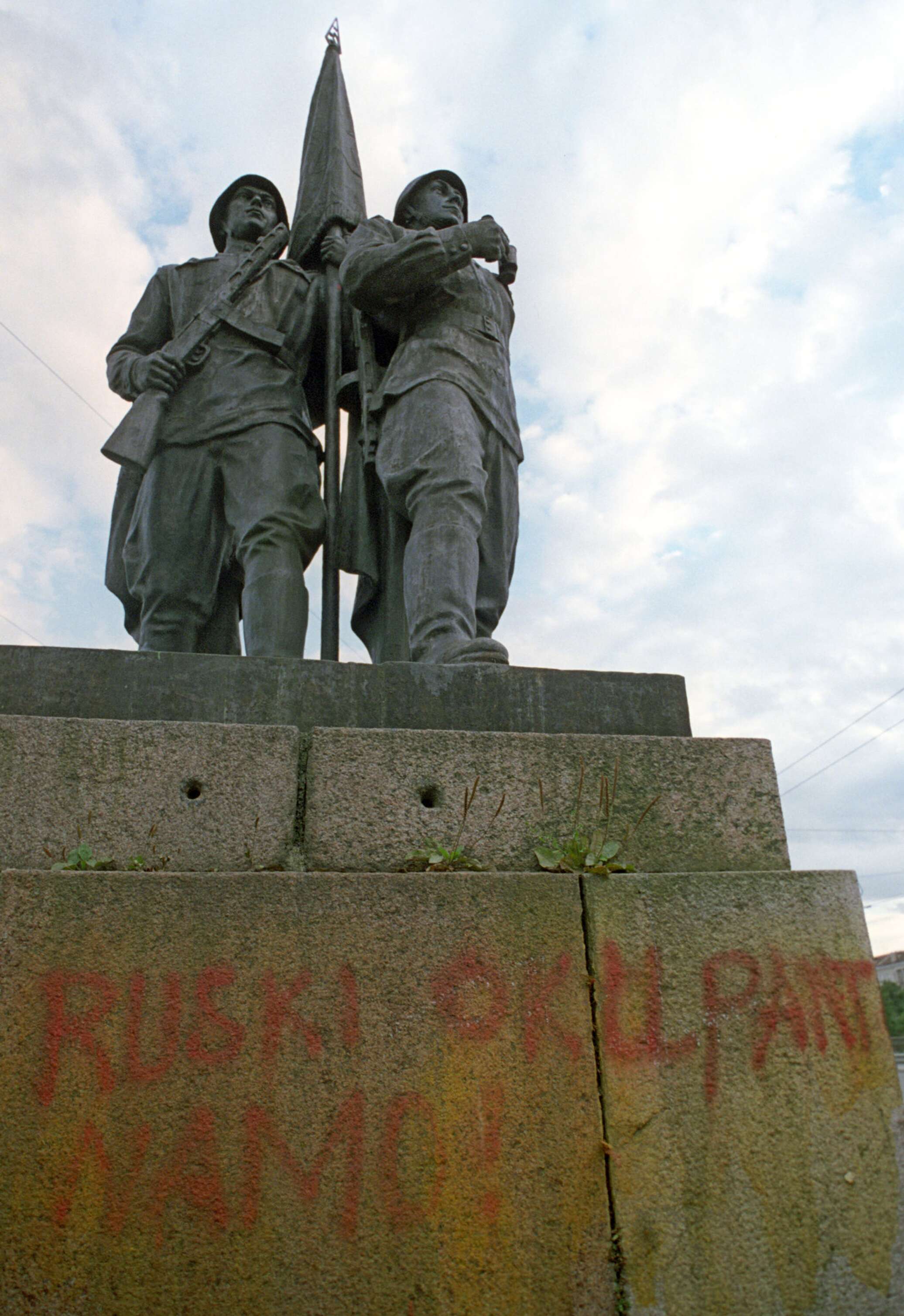 На памятнике намалевали свастику и четыре пятиконечные звезды. Свою выходку злоумышленники приурочили к столетию со дня провозглашения Литовской Республики.