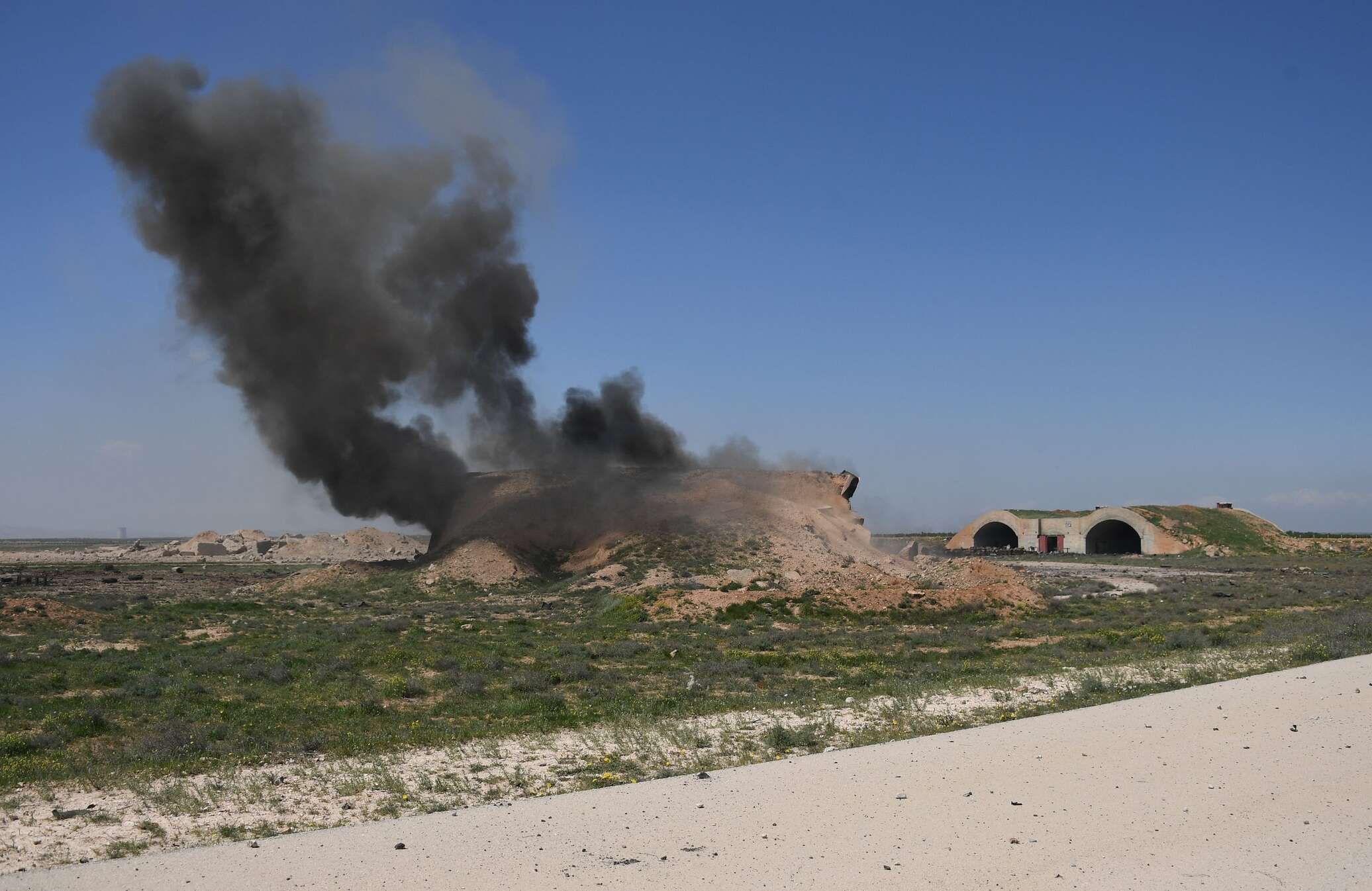 Последствия ракетного удара США по авиабазе Шайрат в Сирии