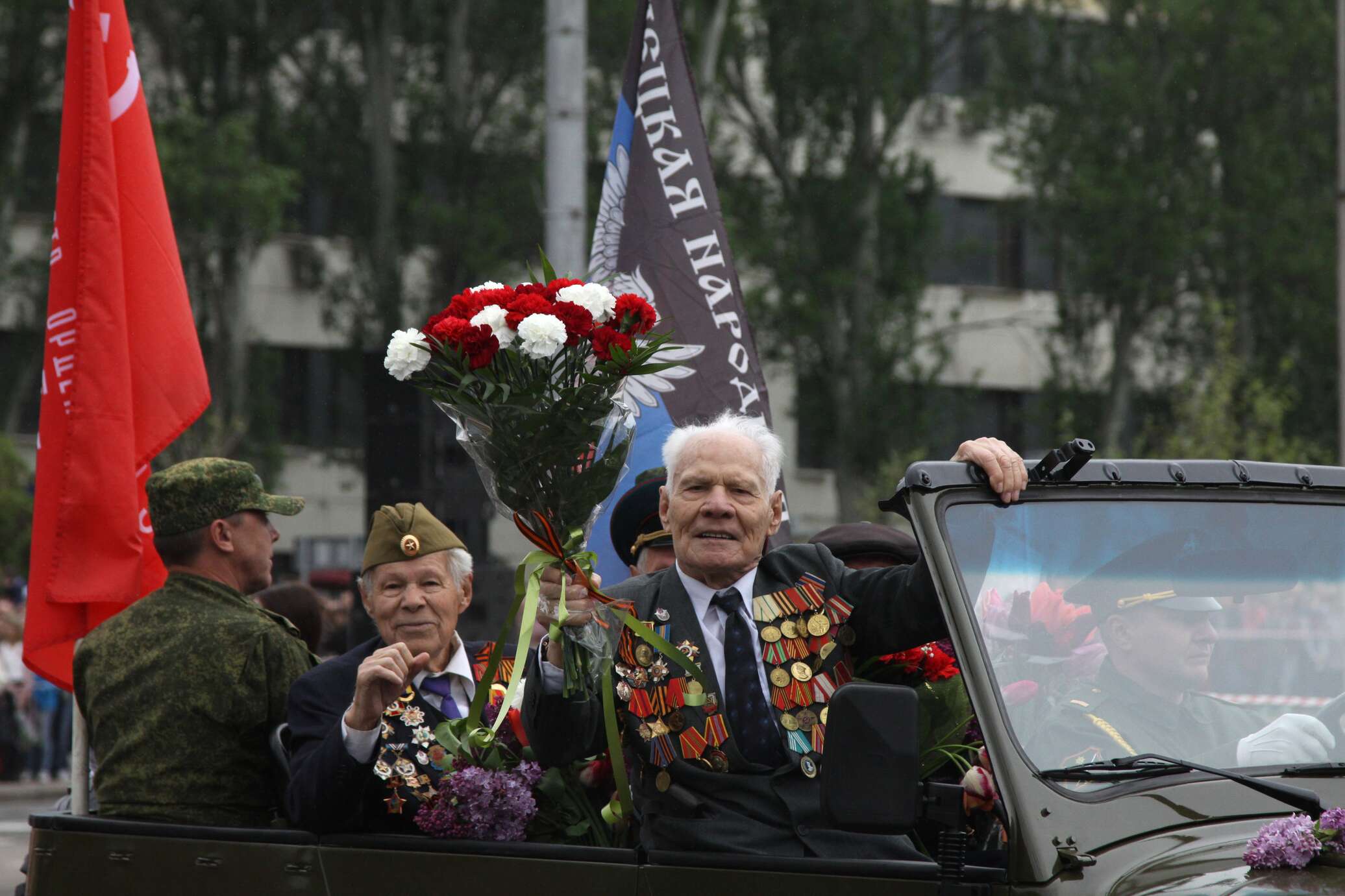 В День Победы в Донецке состоялся праздничный парад с участием 70 единиц боевой техники и 1500 военнослужащих, среди которых были сотрудники правоохранительных органов и МЧС, воспитанники академии МВД и военного лицея ДНР. Кроме того, в этом мероприятии впервые участвовала колонна сводного подразделения Южной Осетии.