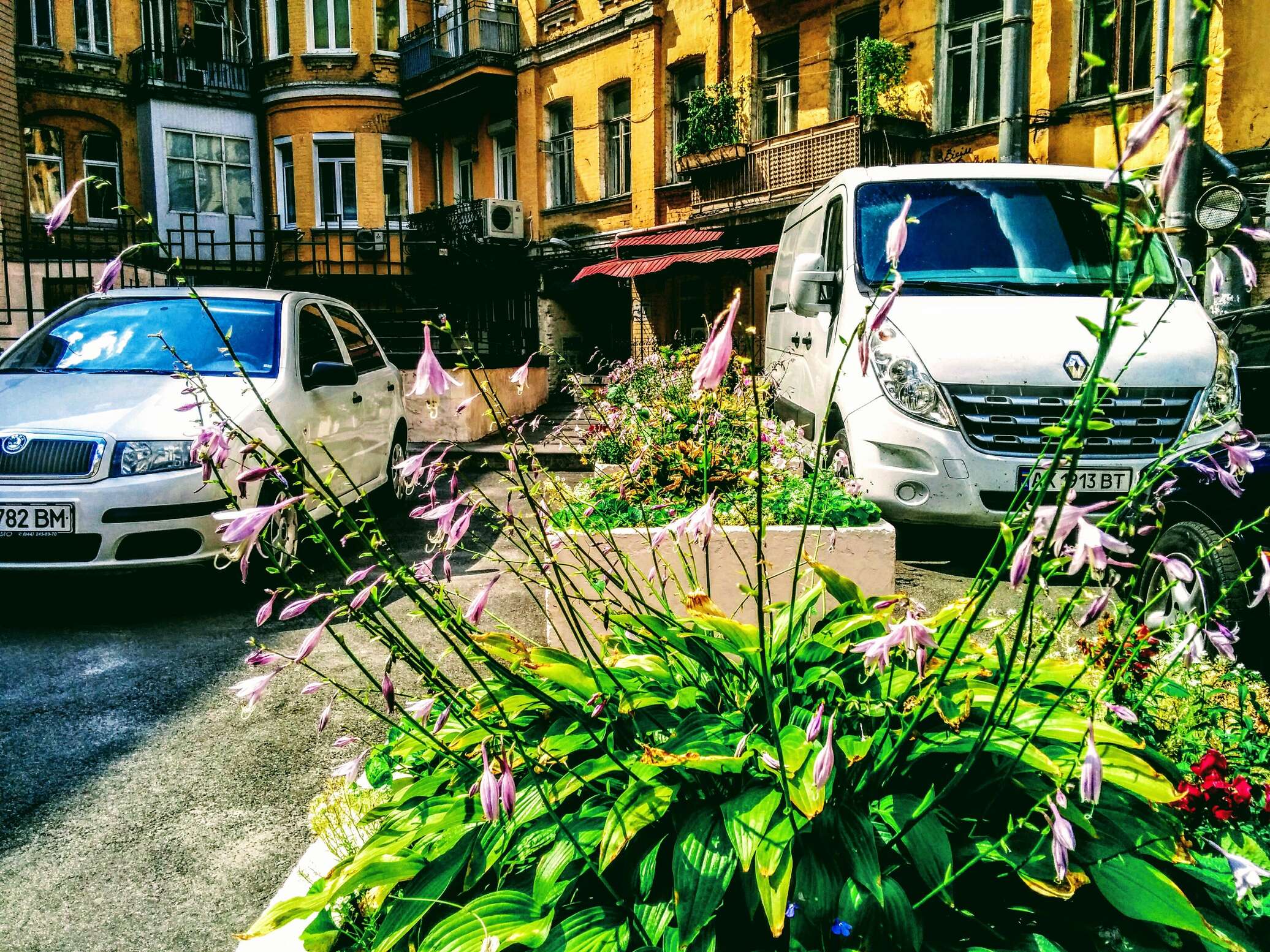 Балконы — все в цветах, на одном из них частенько гордо восседает бабушка с чашечкой чего-то там и сигаретой в руках.