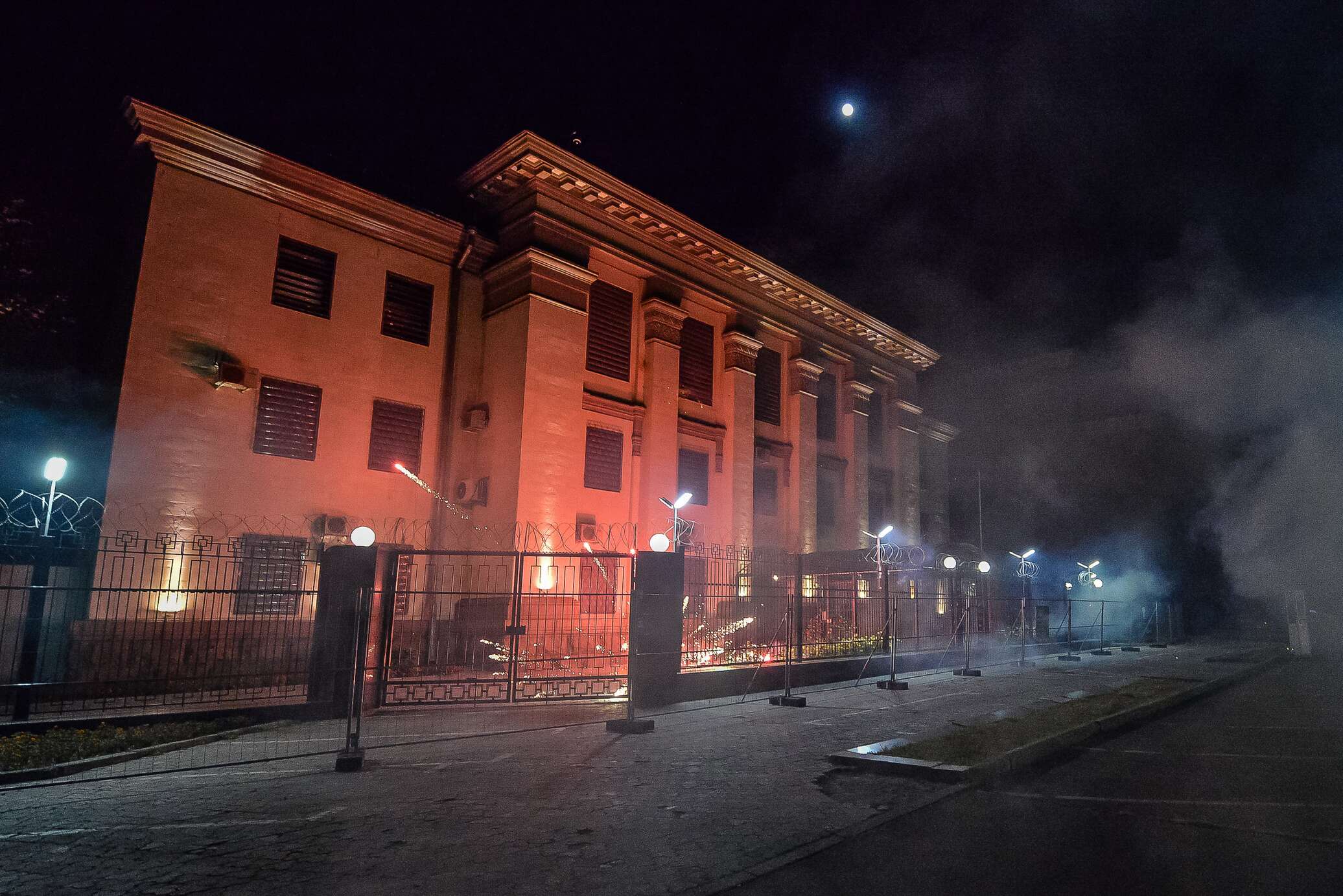 По словам сотрудника Национальной гвардии, который заступил на охрану консульского отдела посольства РФ на Украине, неизвестный бросил две дымовые шашки в сторону здания, одна из них залетела на территорию дипломатического представительства, а другая упала около забора.