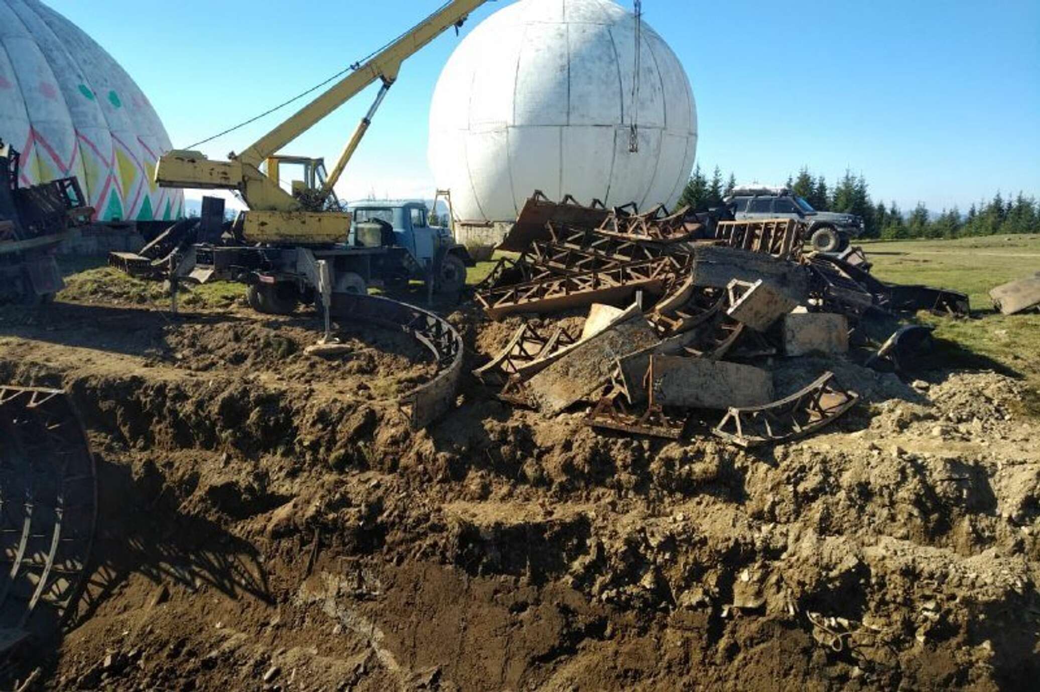 По словам местных жителей, 10 октября неизвестные подвезли технику на гору и начали демонтировать металлические конструкции. Полиция начала расследование и возбудила уголовное дело. Следователи выяснили, что работы проводят военные.