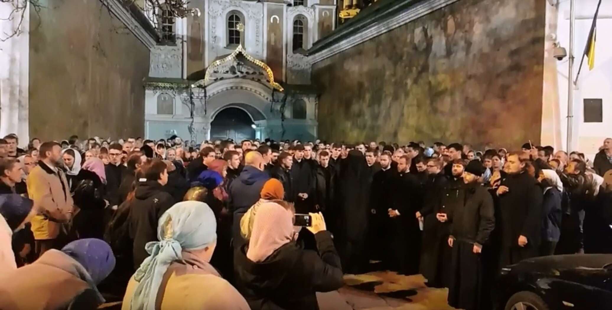 14 октября 2018 года тысячи верующих собрались в Лавре, молясь о её защите от захвата. Видео с места событий публикует портал Украина.ру