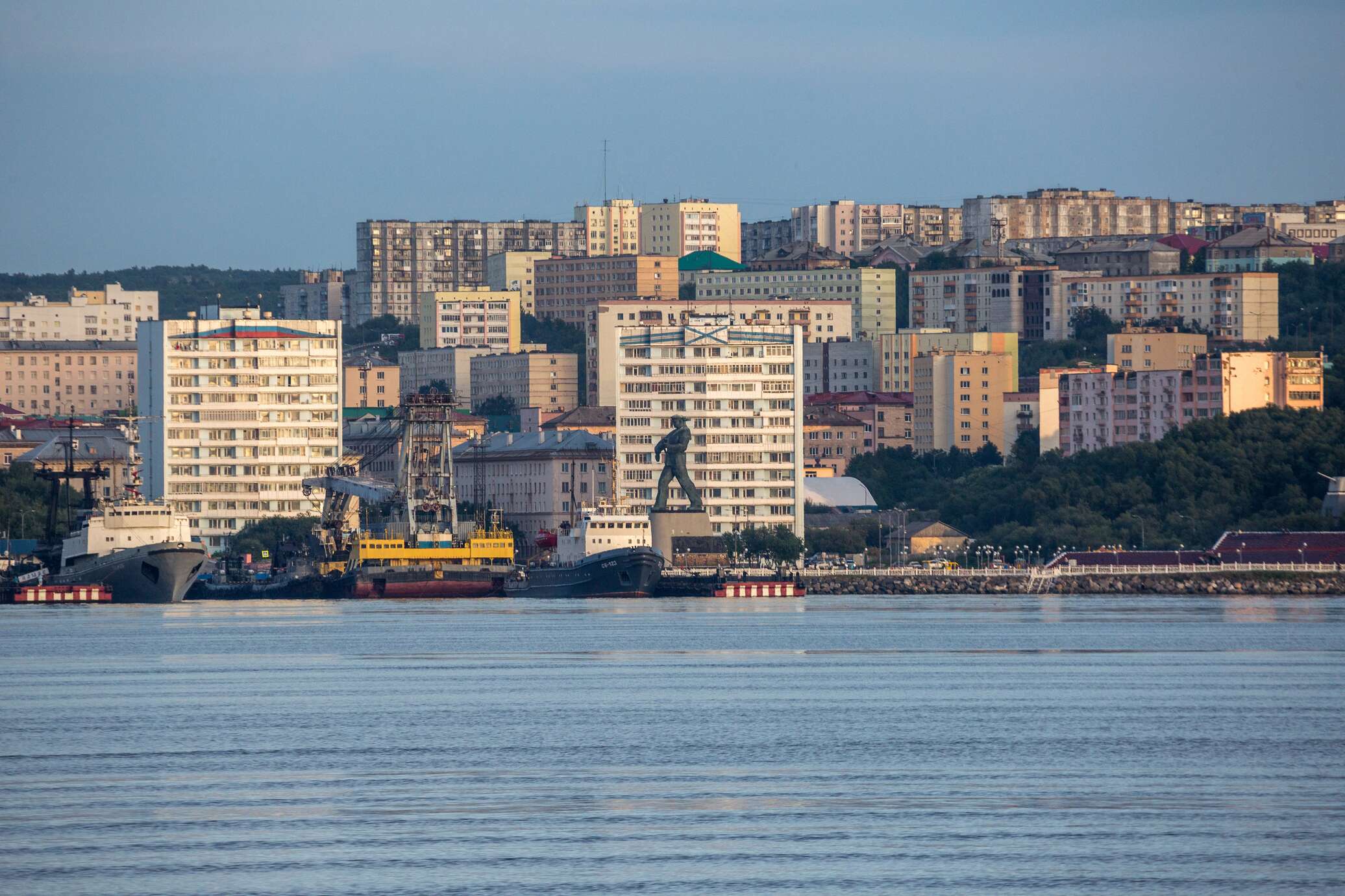 © РИА Новости . Илья Тимин / Перейти в фотобанкВид Североморска и порта со стороны Кольского залива Баренцева Моря