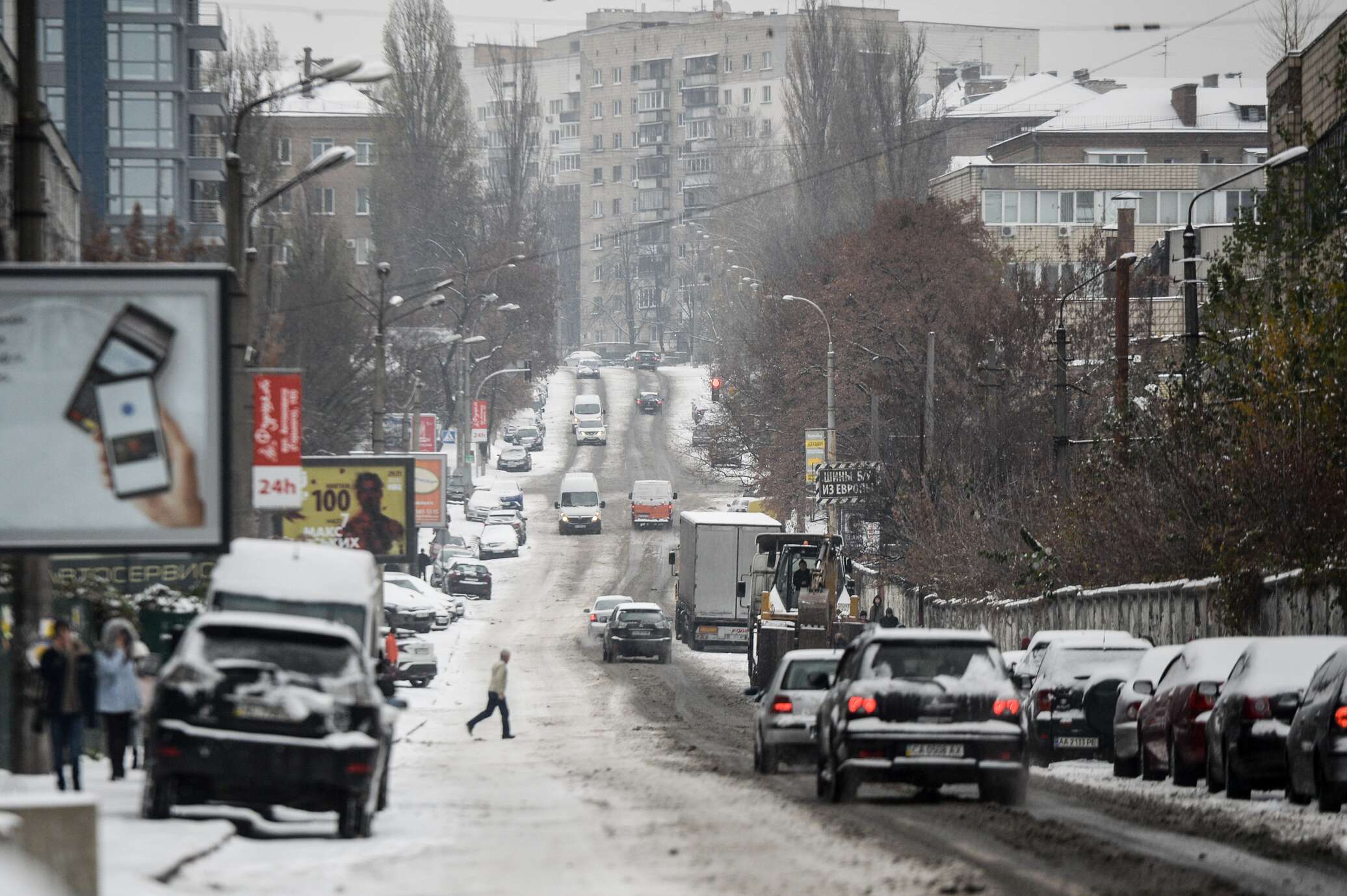 Киев снег улица вид жители автомобиль