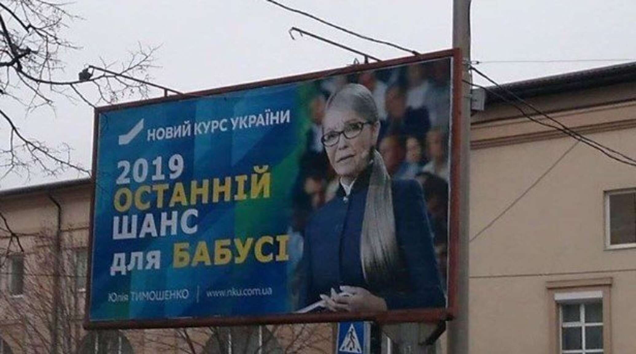 В частности, на щитах размещены имя и фамилия кандидатки в президенты и ее не самые удачные отредактированные фотографии, на которых лидер «Батькивщины» искусственно состарена.