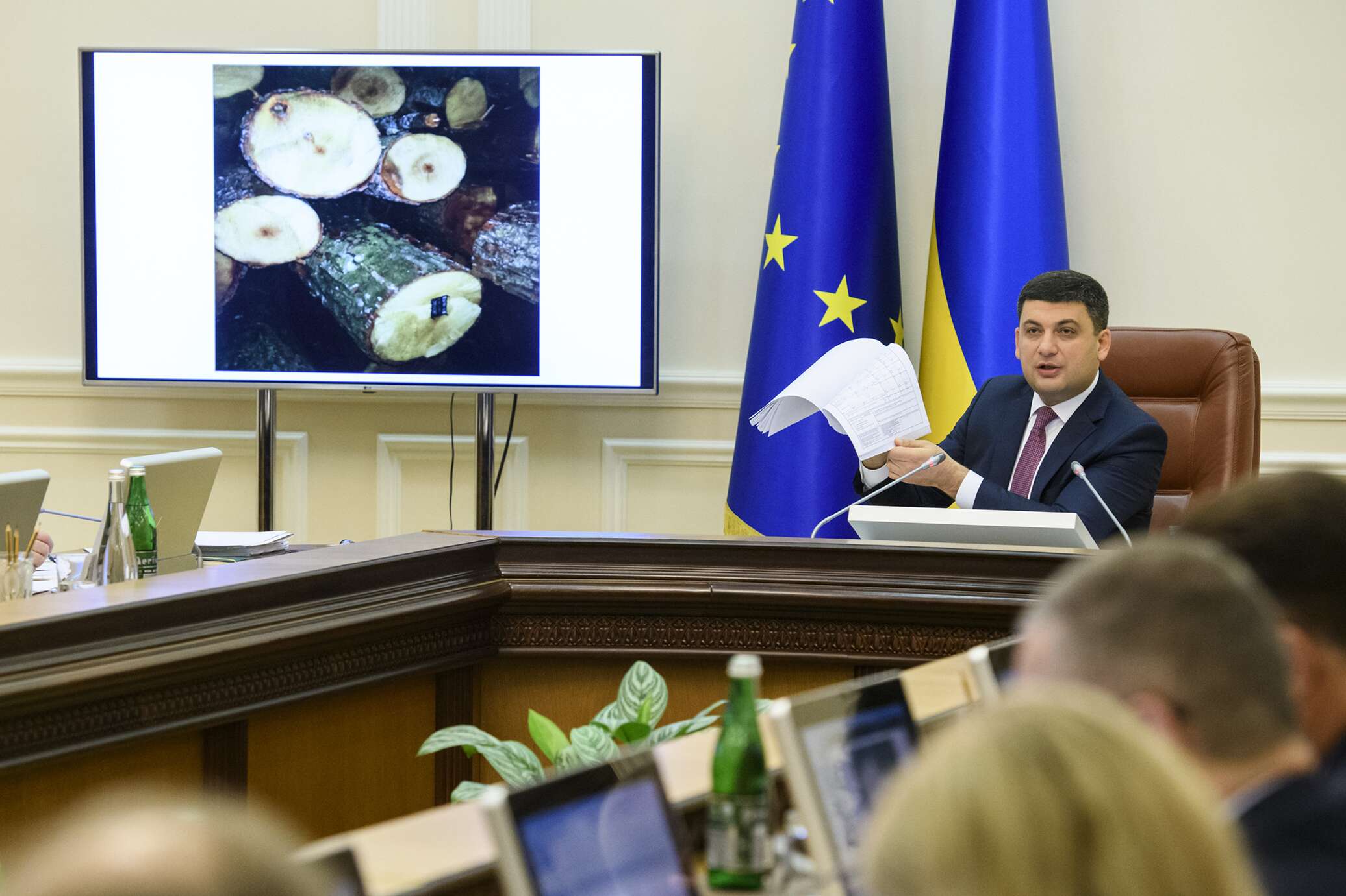 «До конца этого месяца, до конца года вам личное поручение совместно с Минюстом и секретариатом Кабмина внести на рассмотрение правительства решение о внедрении прозрачных аукционов по продаже леса. И чтобы только на аукционах продавали — хватит этих торгов с молотком», — сказал премьер-министр Украины Владимир Гройсман в ходе правительственного заседания.