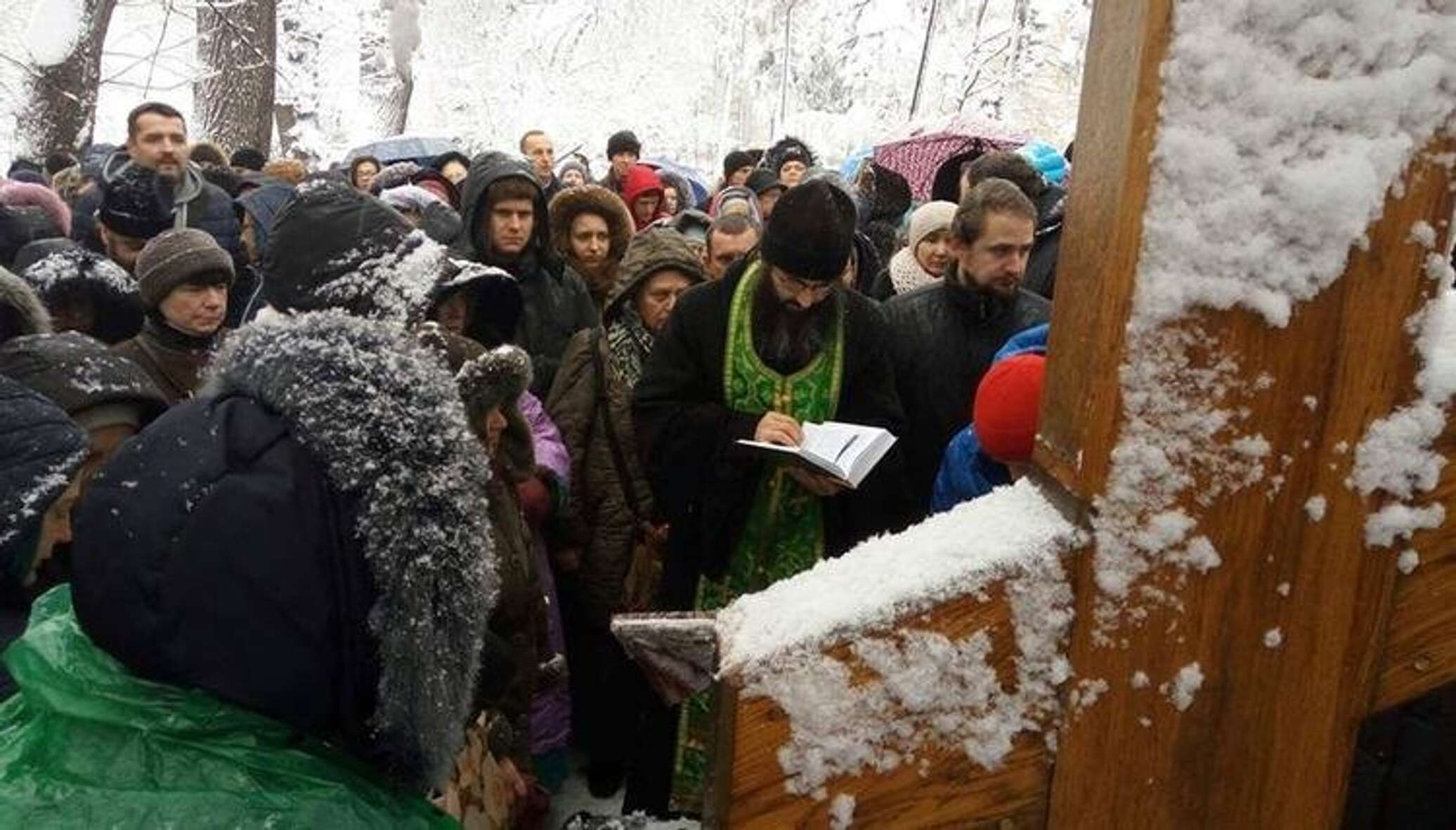 Отмечается, что молебен проходит в спокойной обстановке, безопасность верующих обеспечивают сотрудники полиции.