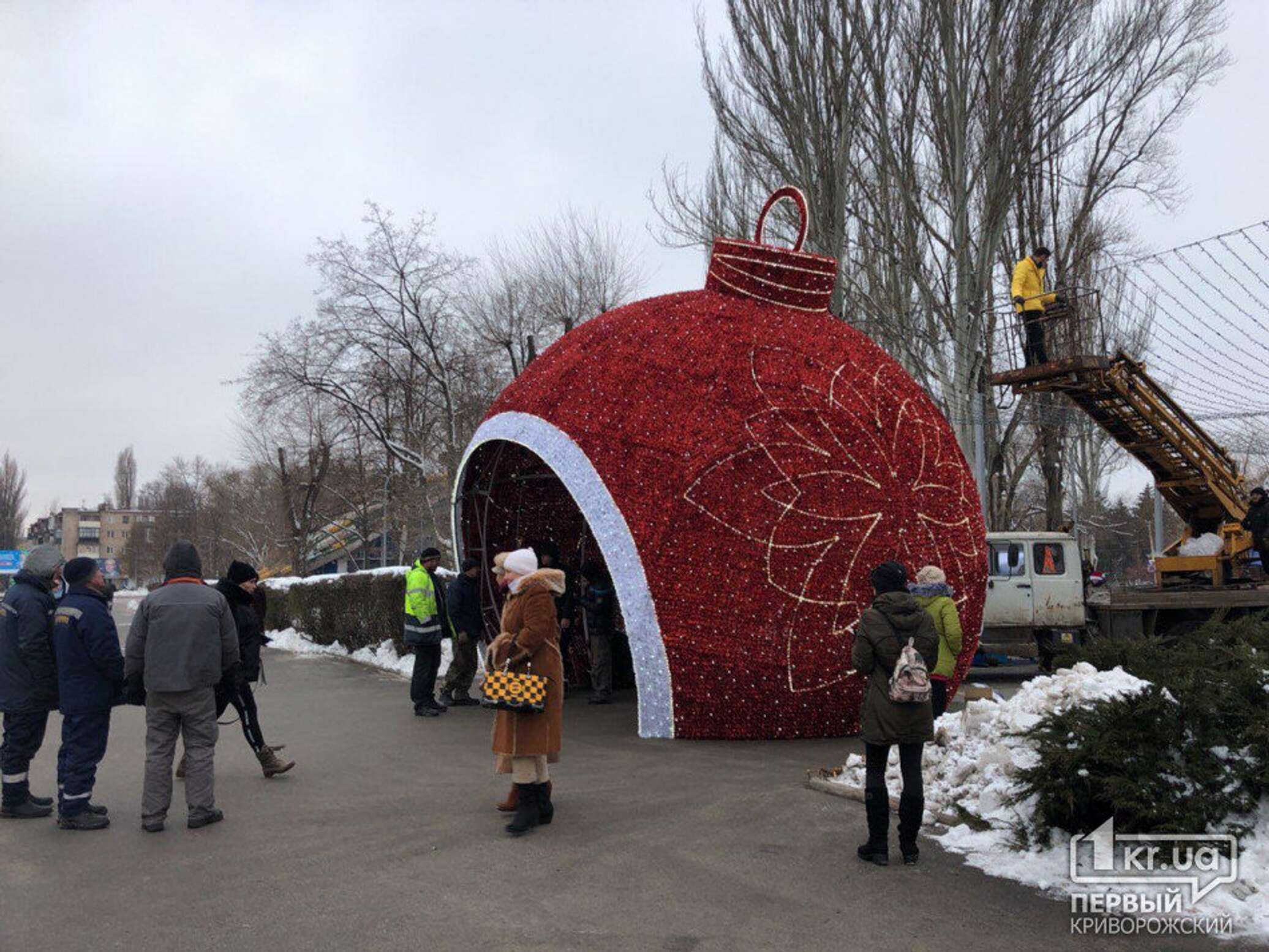 В преддверии Нового года улицы украинских городов полным ходом украшают к празднику. В Кривом Роге решили отличиться и установили рекордный по своим размерам ёлочный шар