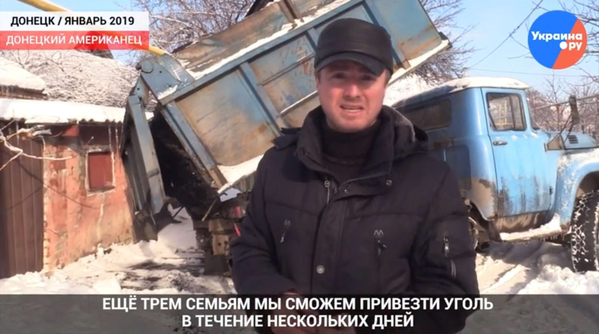 «Сегодня мы отвезем уголь шести семьям, которые живут в Трудовских. Трудовские — это пострадавший от войны пригород Донецка, который находится под обстрелами в течение последних почти пяти лет с начала войны. Каждая из этих семей потеряла кормильца во время войны, так что мы постараемся сегодня сделать их жизнь чуточку лучше… Всего у нас 13 тонн (угля. — Ред.). Сегодня мы раздаем 6,5 тонны. Здесь очень трудно жить, и этим семьям нужна помощь, чтобы обогреть свои дома», — рассказал журналист.